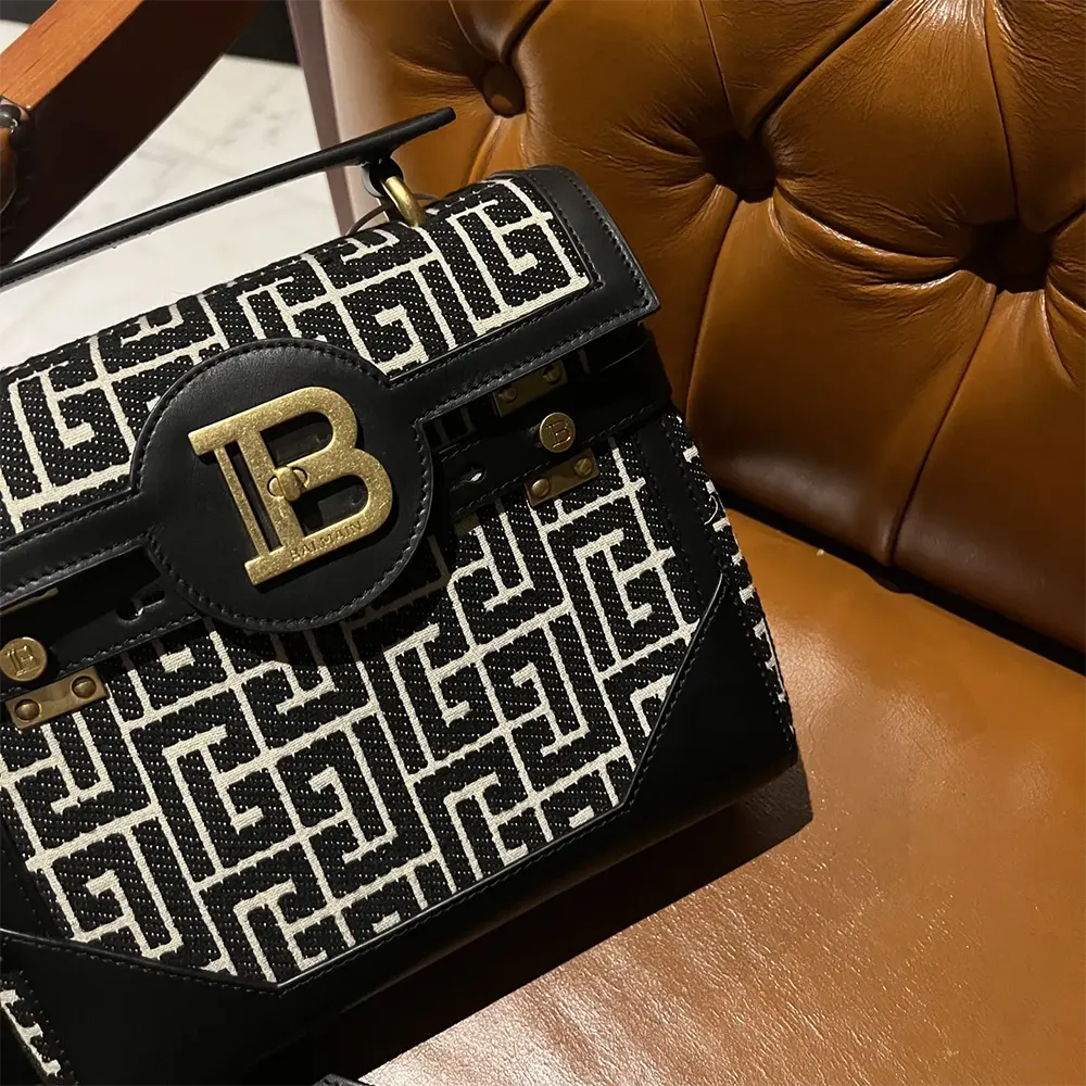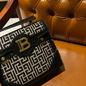 - Metal Balmain monogram and burnished gold accents