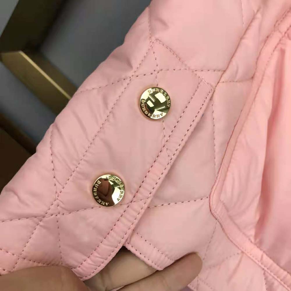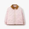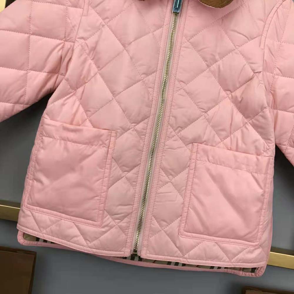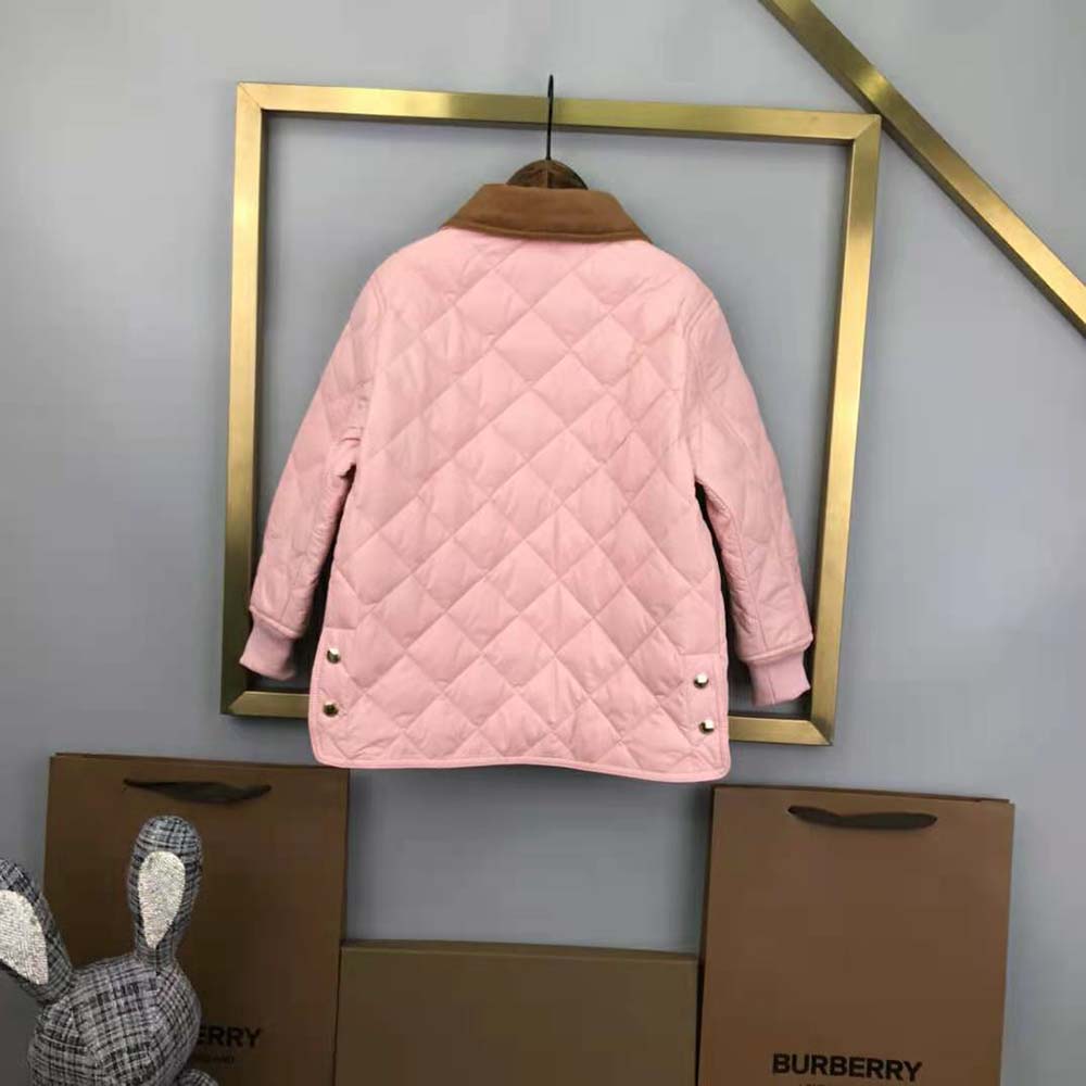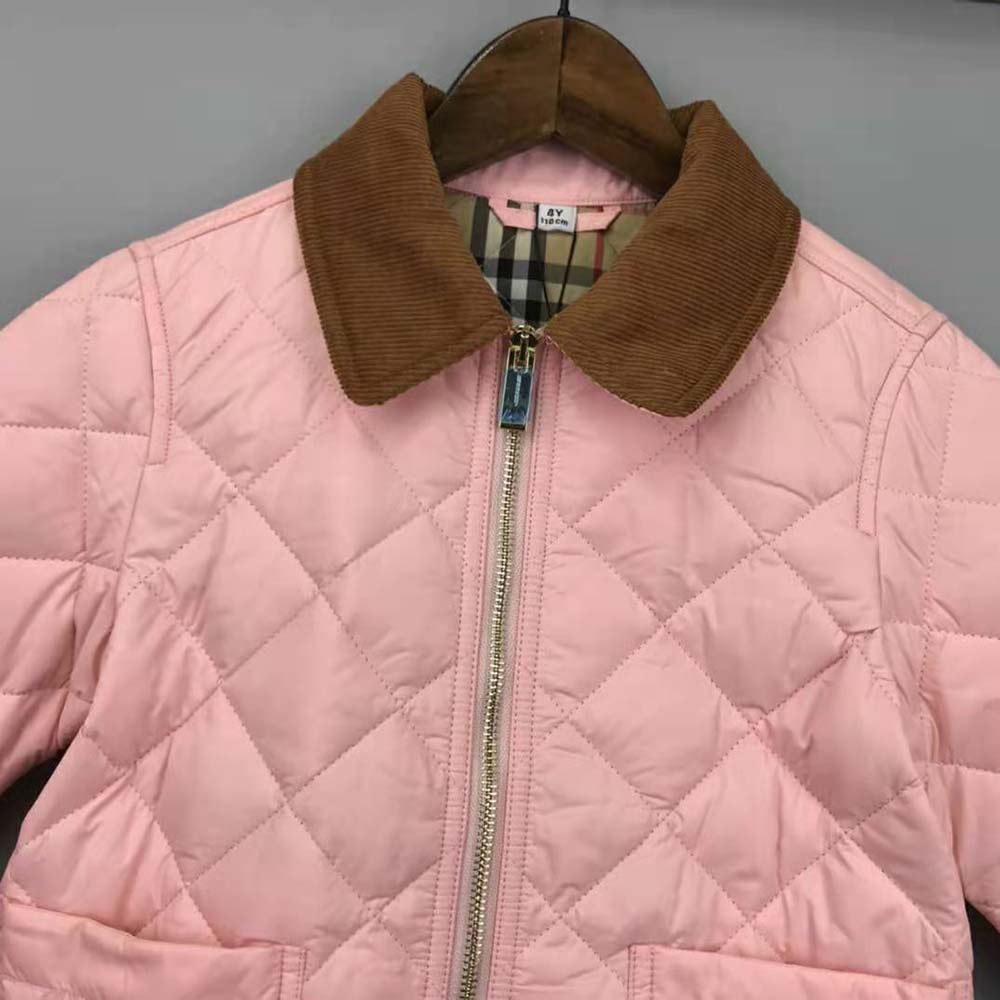 Burberry Girls’ Corduroy Collar Diamond Quilted Jacket-Pink