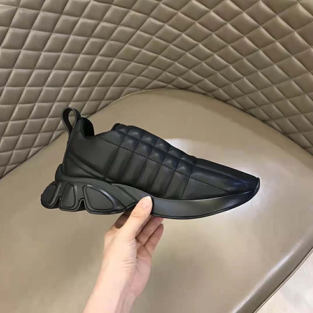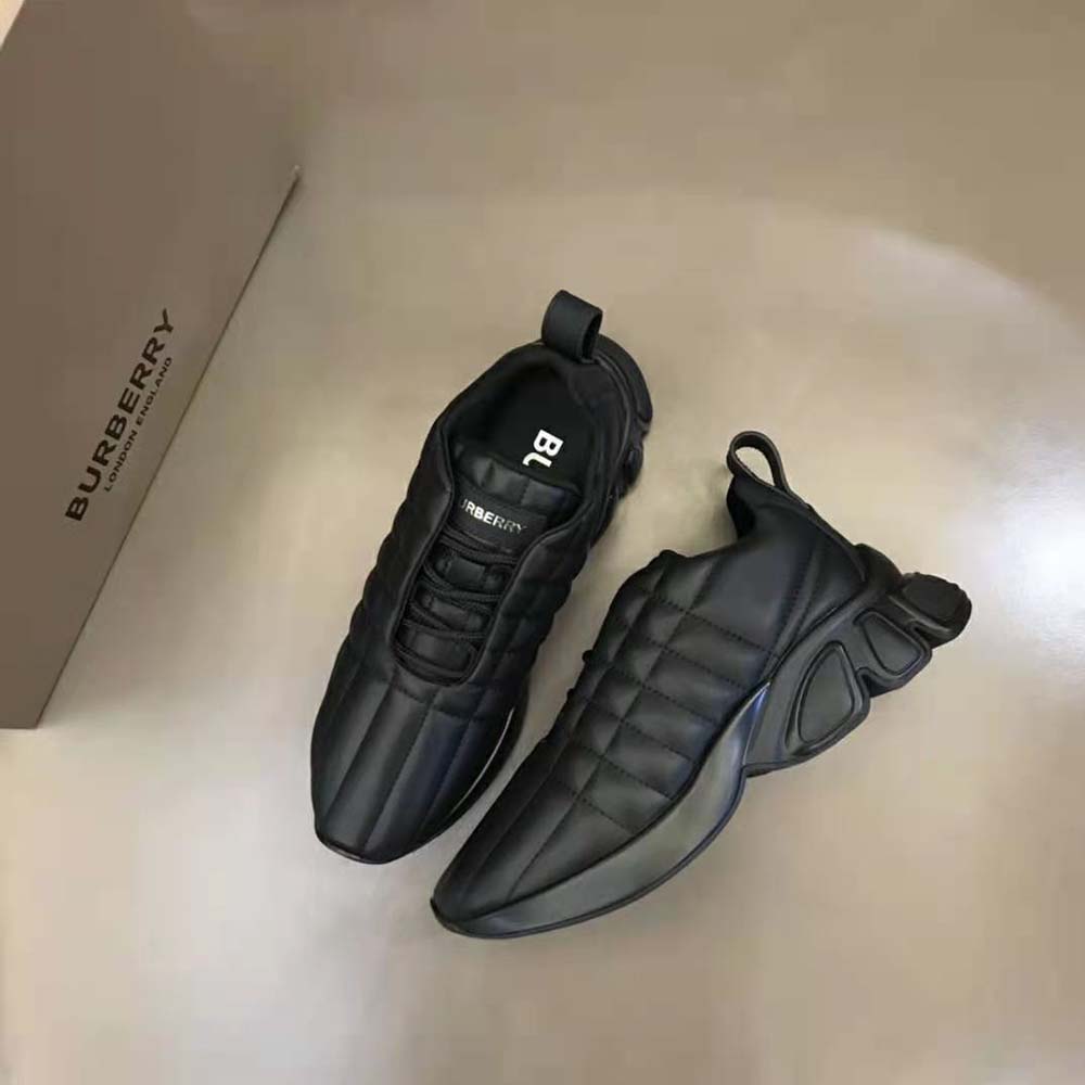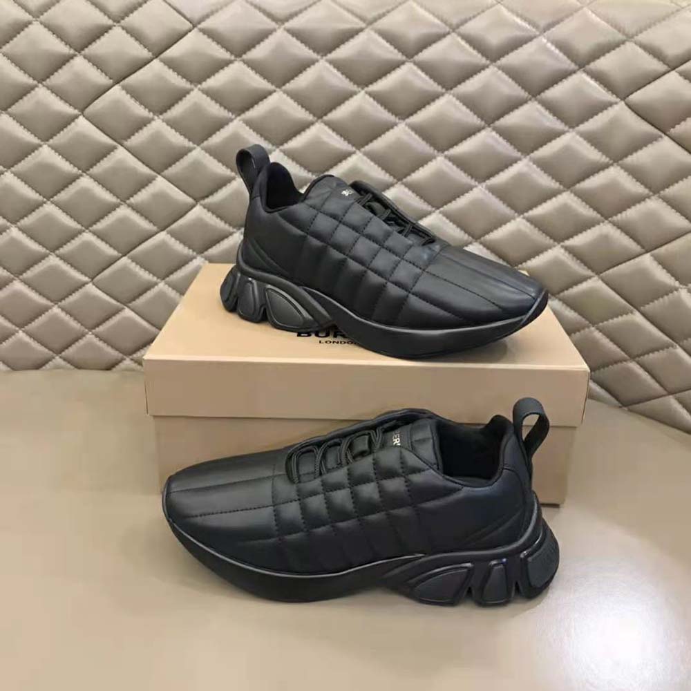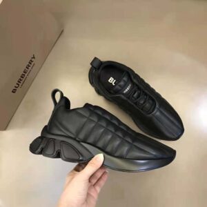 - Patch with Burberry lettering at tongue, raised Burberry lettering at heel