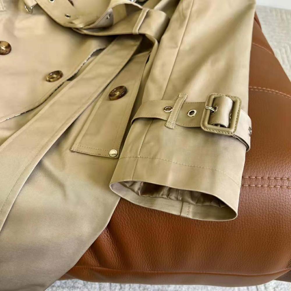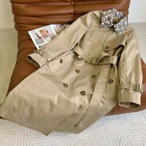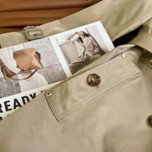 - Signature details: hook-and-eye collar closure, gun flap, belted cuffs, D-ring belt, storm shield