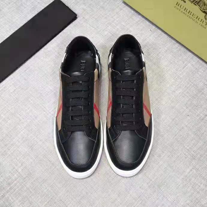- Italian-made leather sneakers with panels of English-woven House check cotton.