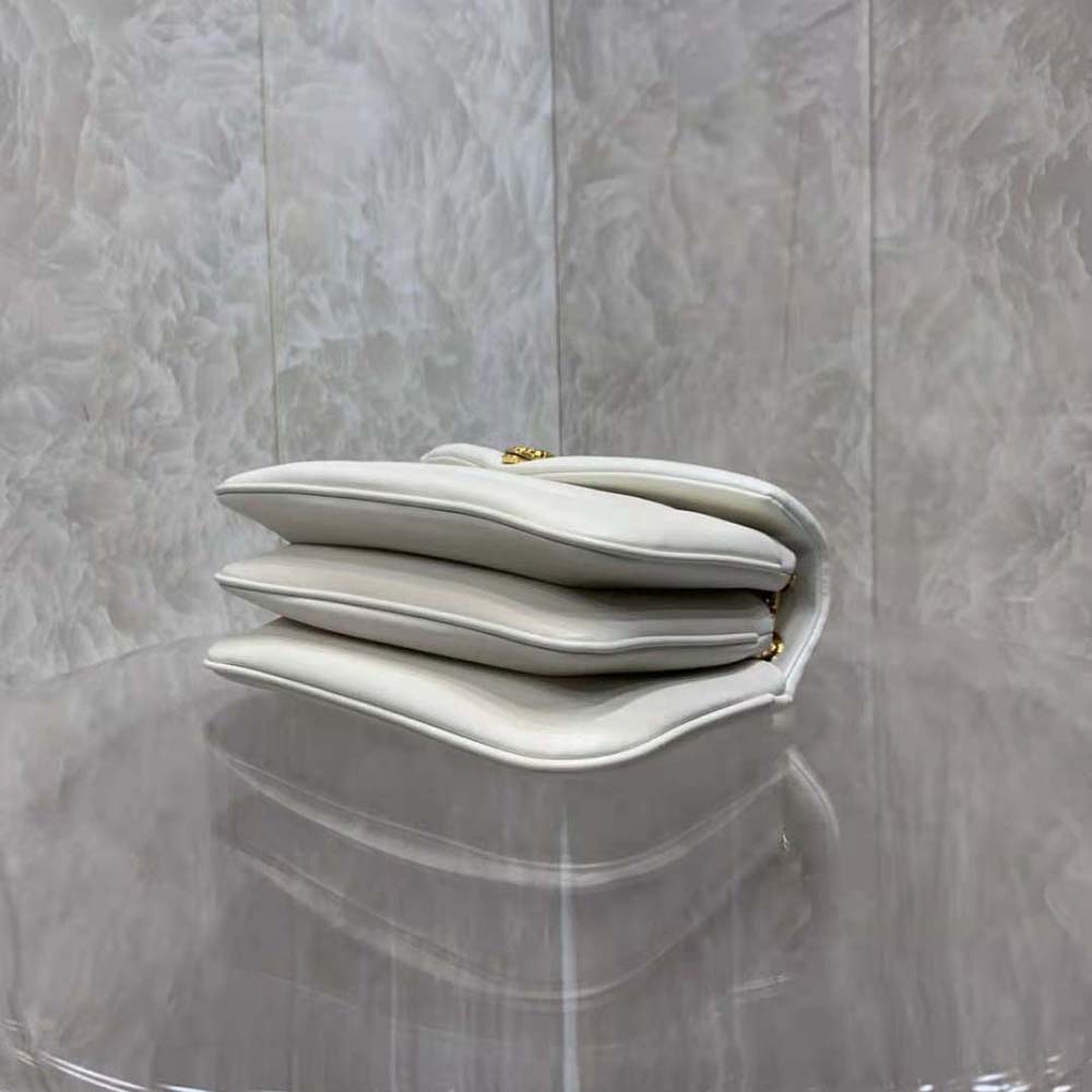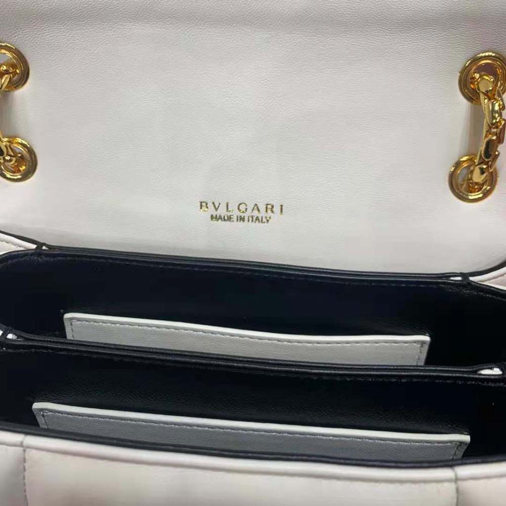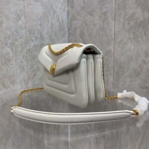 - Serpenti Reverse small shoulder bag in ivory opal quilted Metropolitan calf leather with black nappa leather lining.