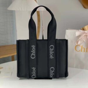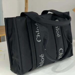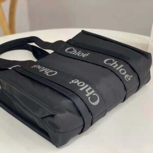 - Tote bag in recycled nylon with Chloé logo embroidery