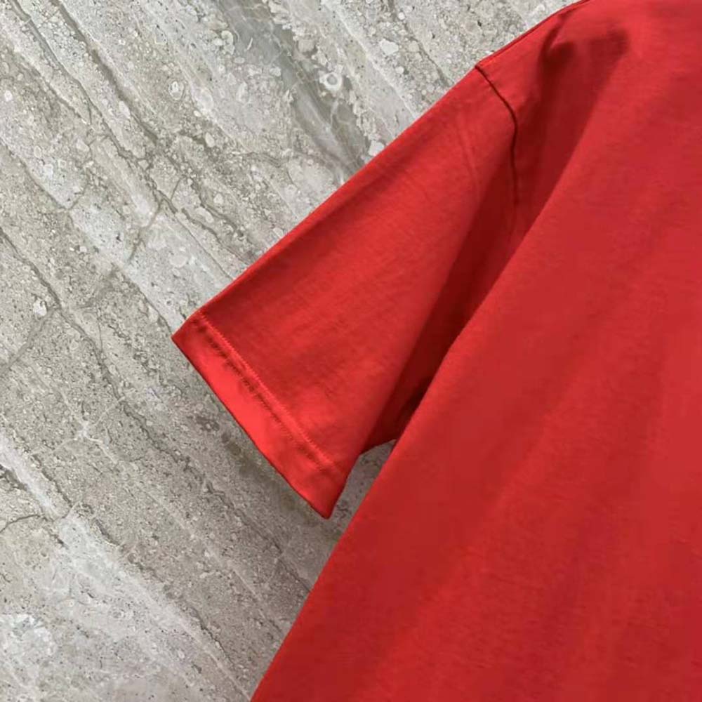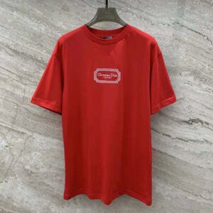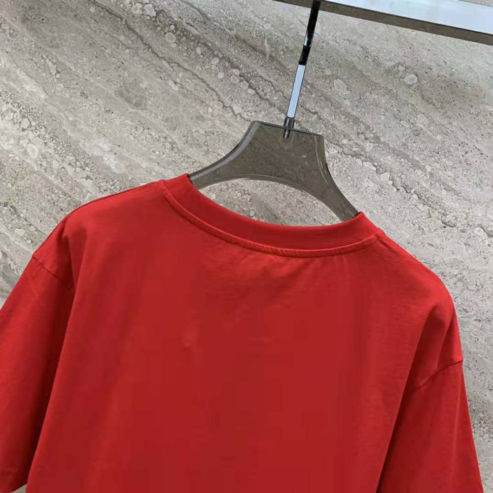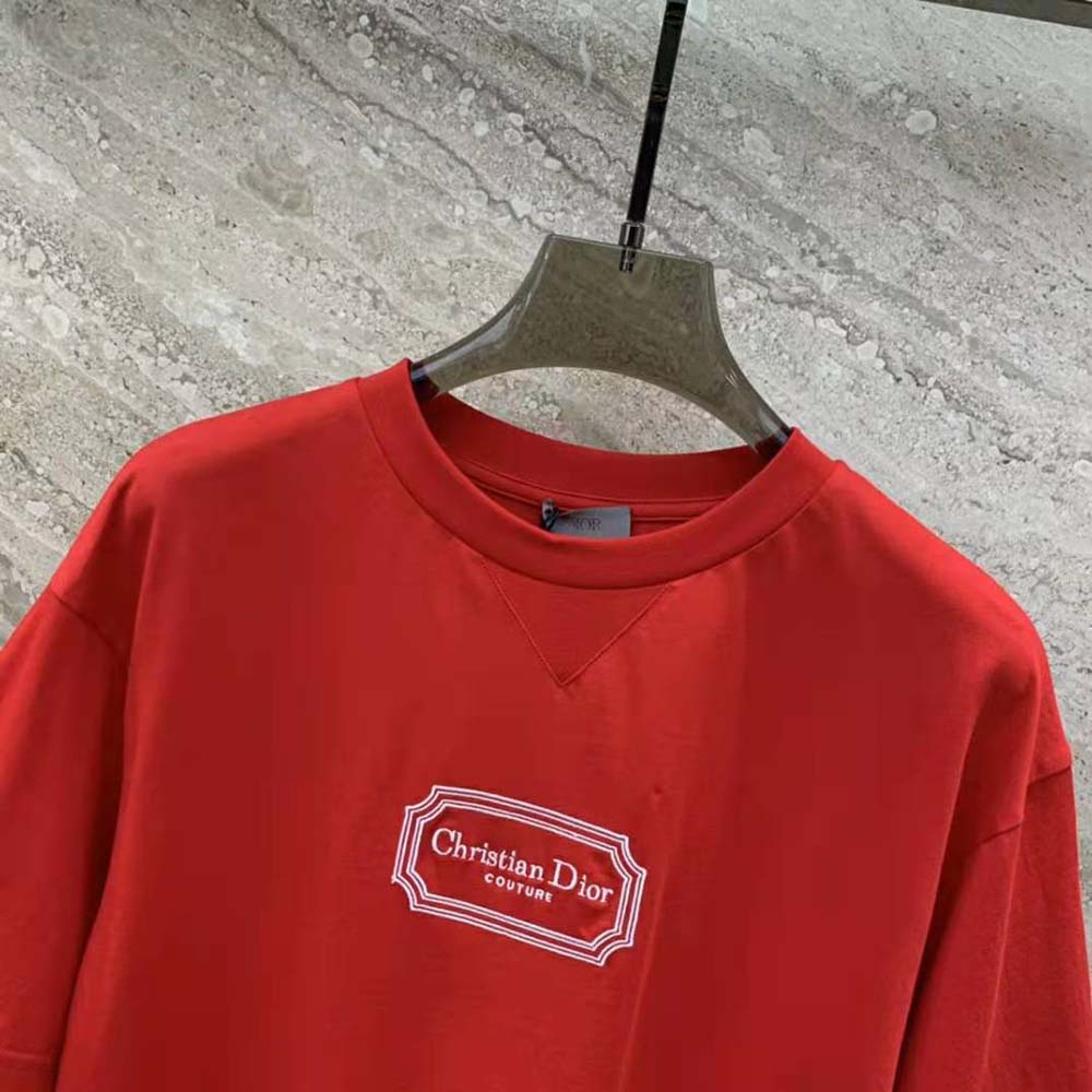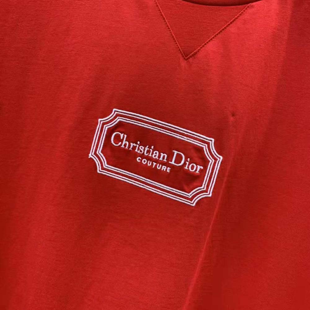 - The Christian Dior Couture T-shirt is crafted in red cotton jersey.