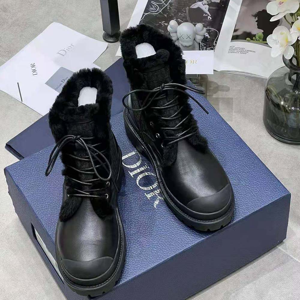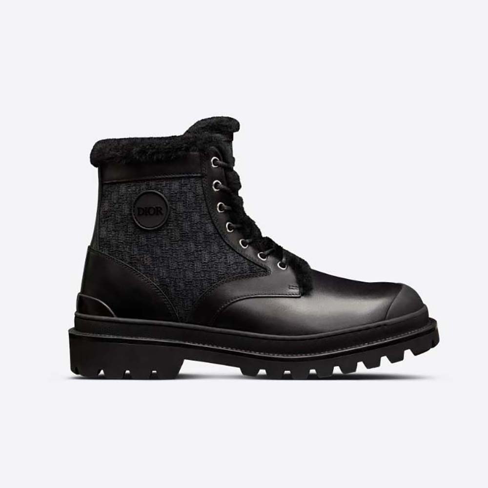 - The Dior Explorer ankle boot is crafted in black smooth calfskin and features black