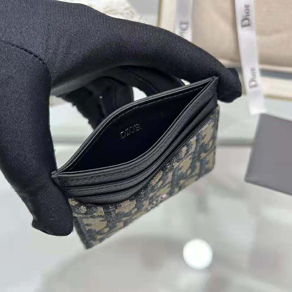 - Black grained calfskin and beige and black Dior Oblique jacquard