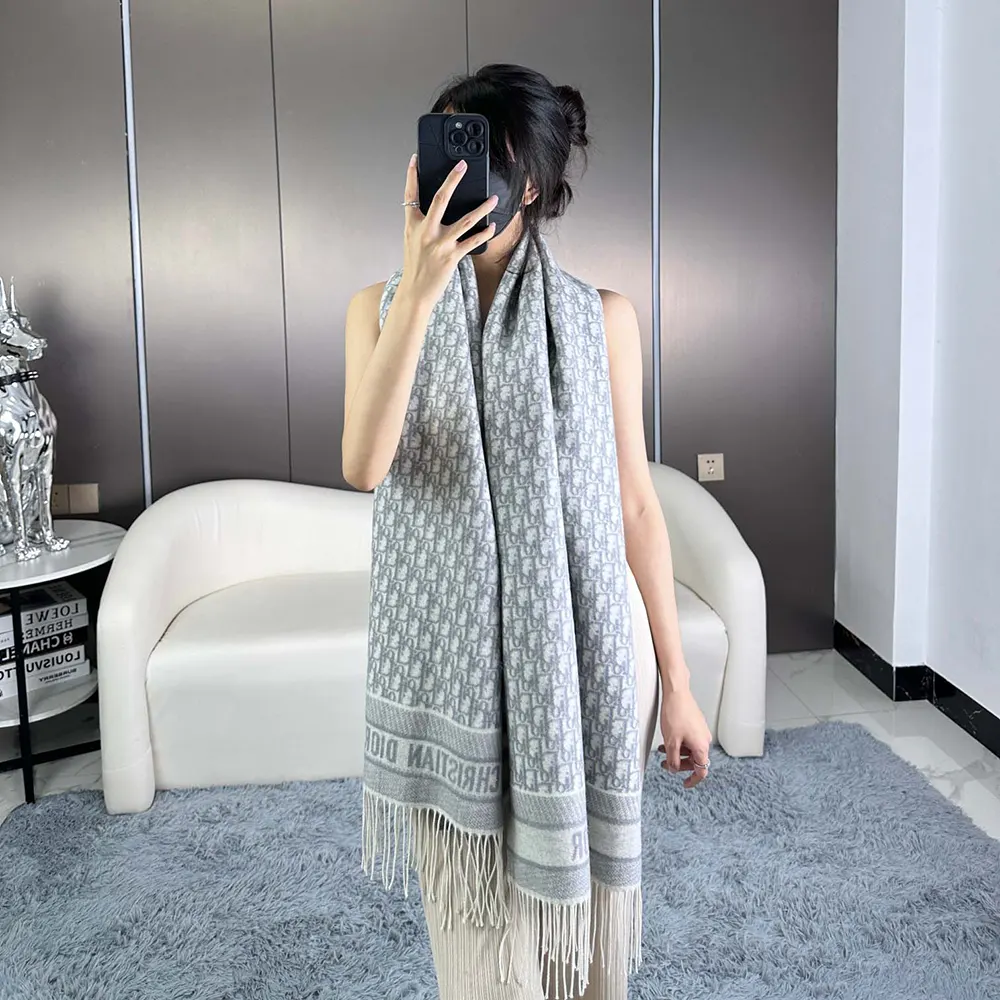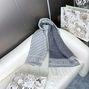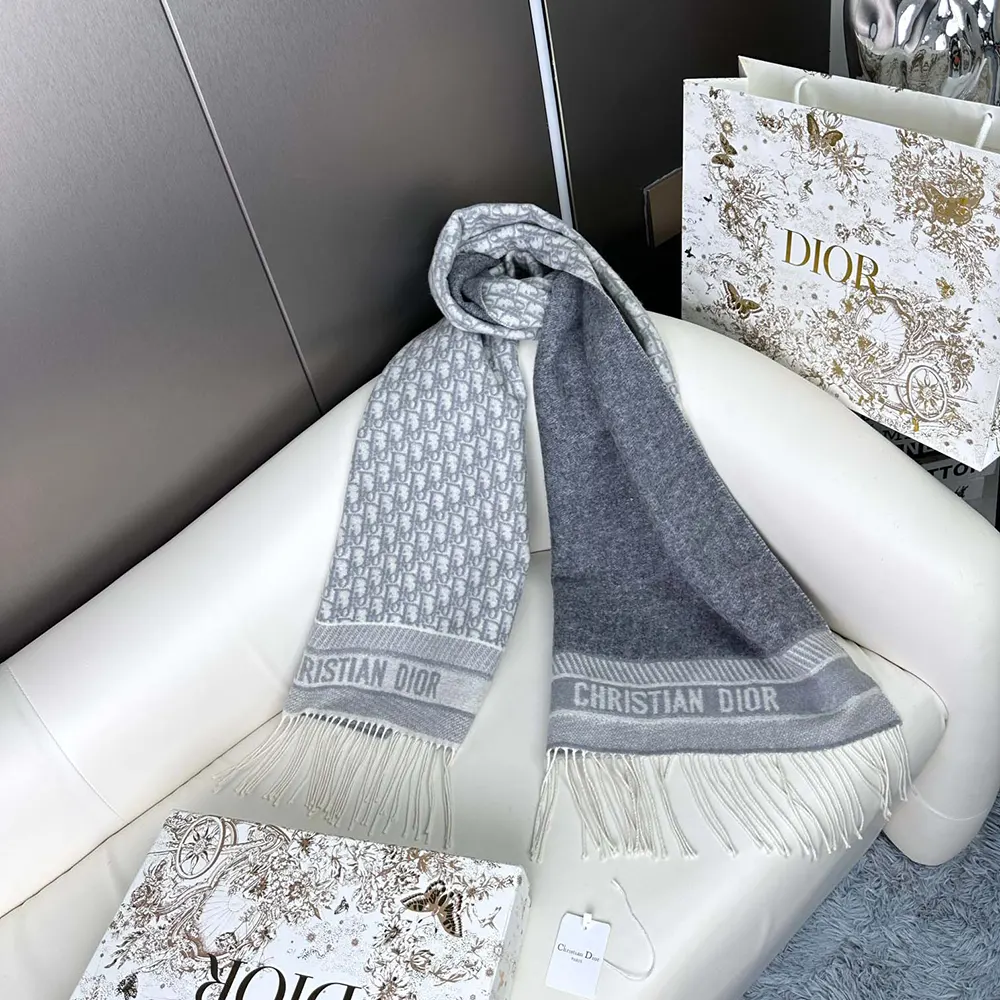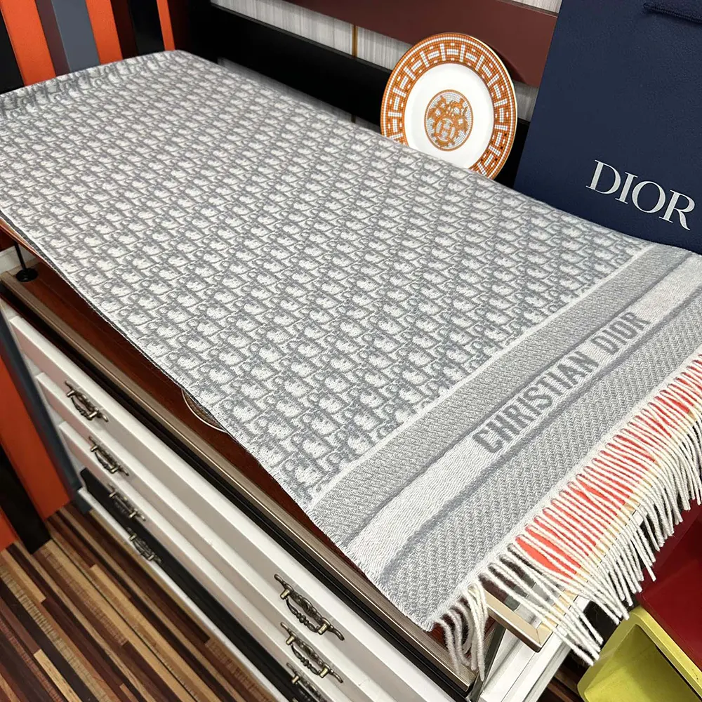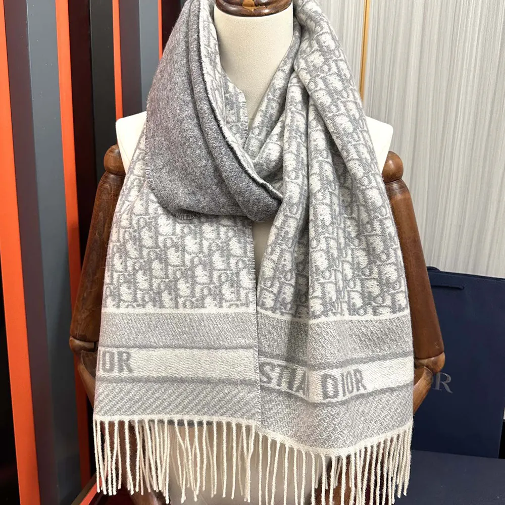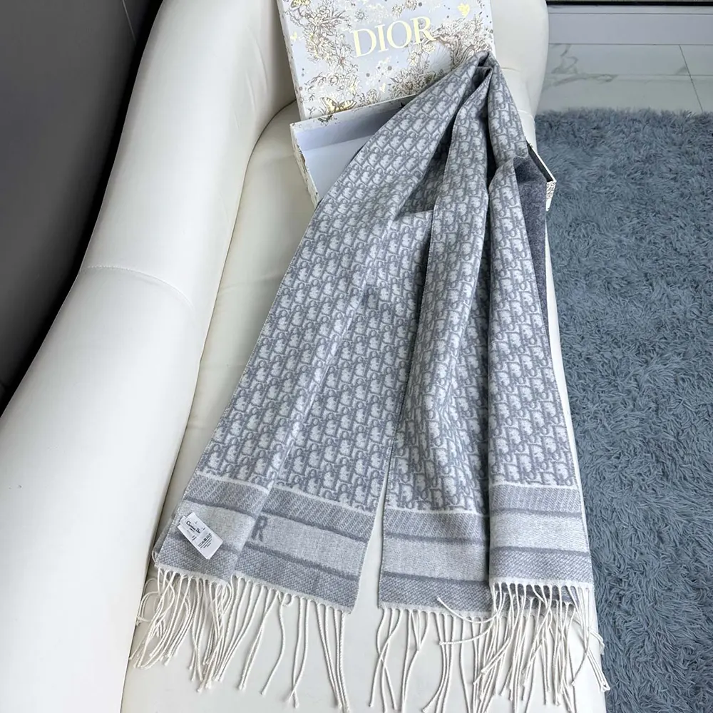 - The Dior Oblique scarf reframes House codes in a modern spirit. Crafted in ecru and gray cashmere,