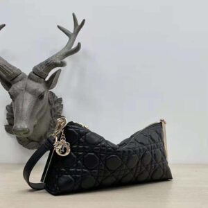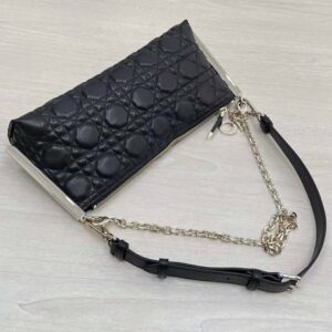 - Its supple form, crafted in black Cannage lambskin, is enhanced by D.I.O.R. charms and gold-finish metal details.