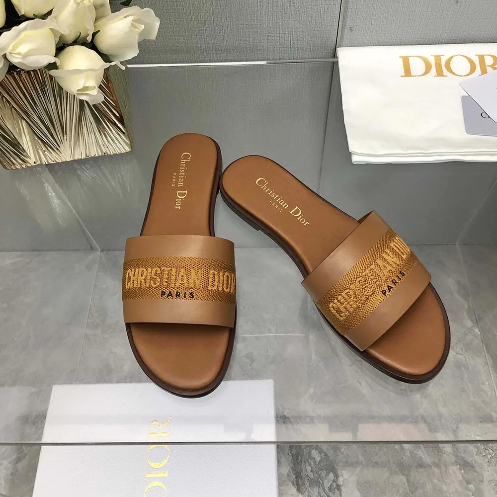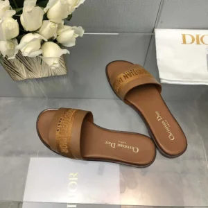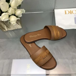 - The upper in camel calfskin and cotton embroidered with the Christian Dior Paris signature instantly stands out,