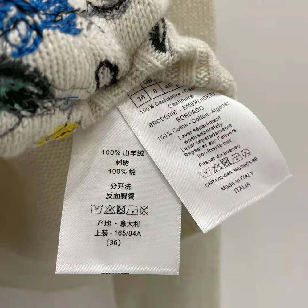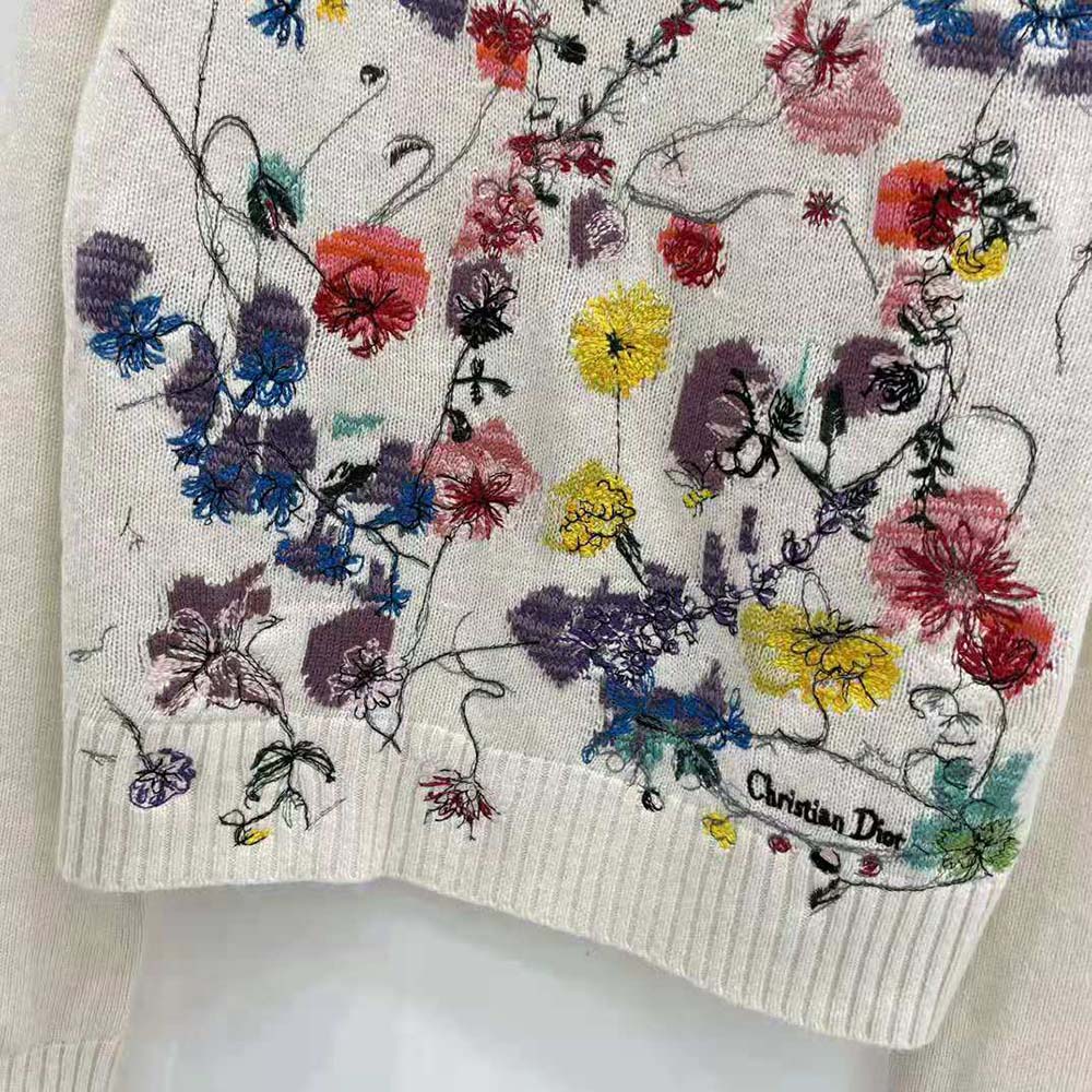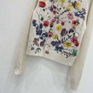 - The embroidered sweater displays the red multicolor Florilegio motif,
