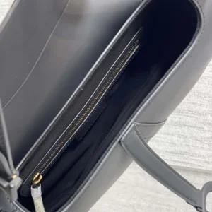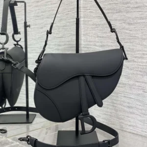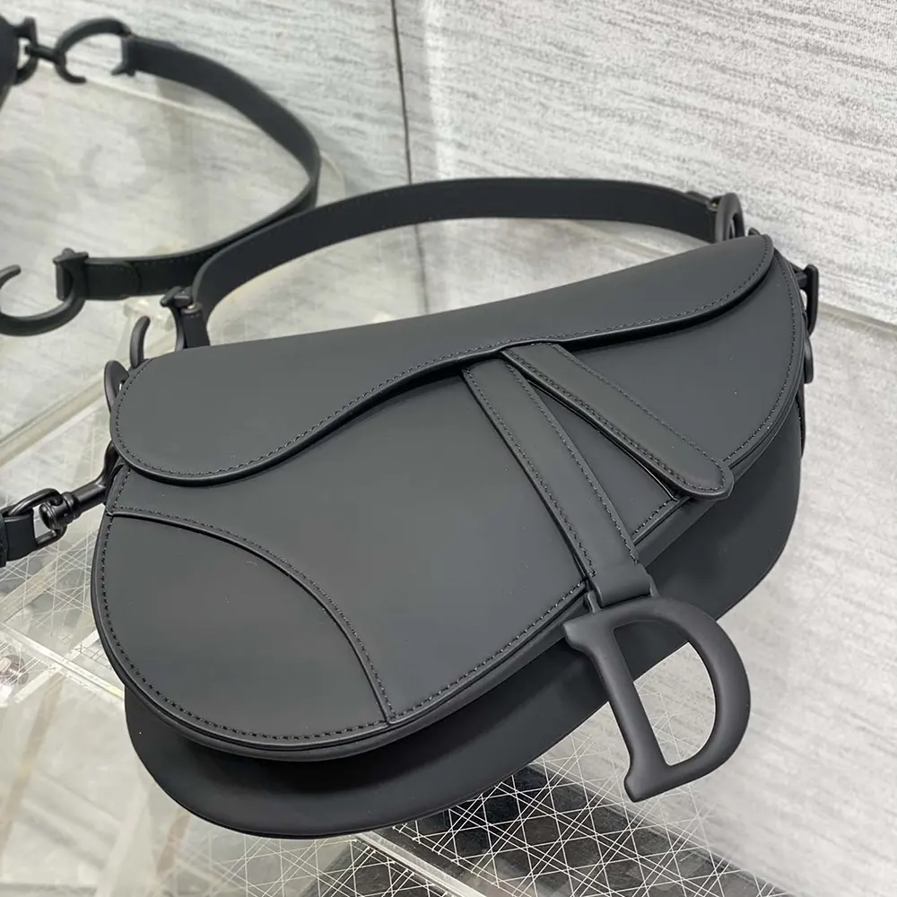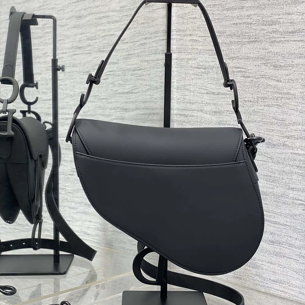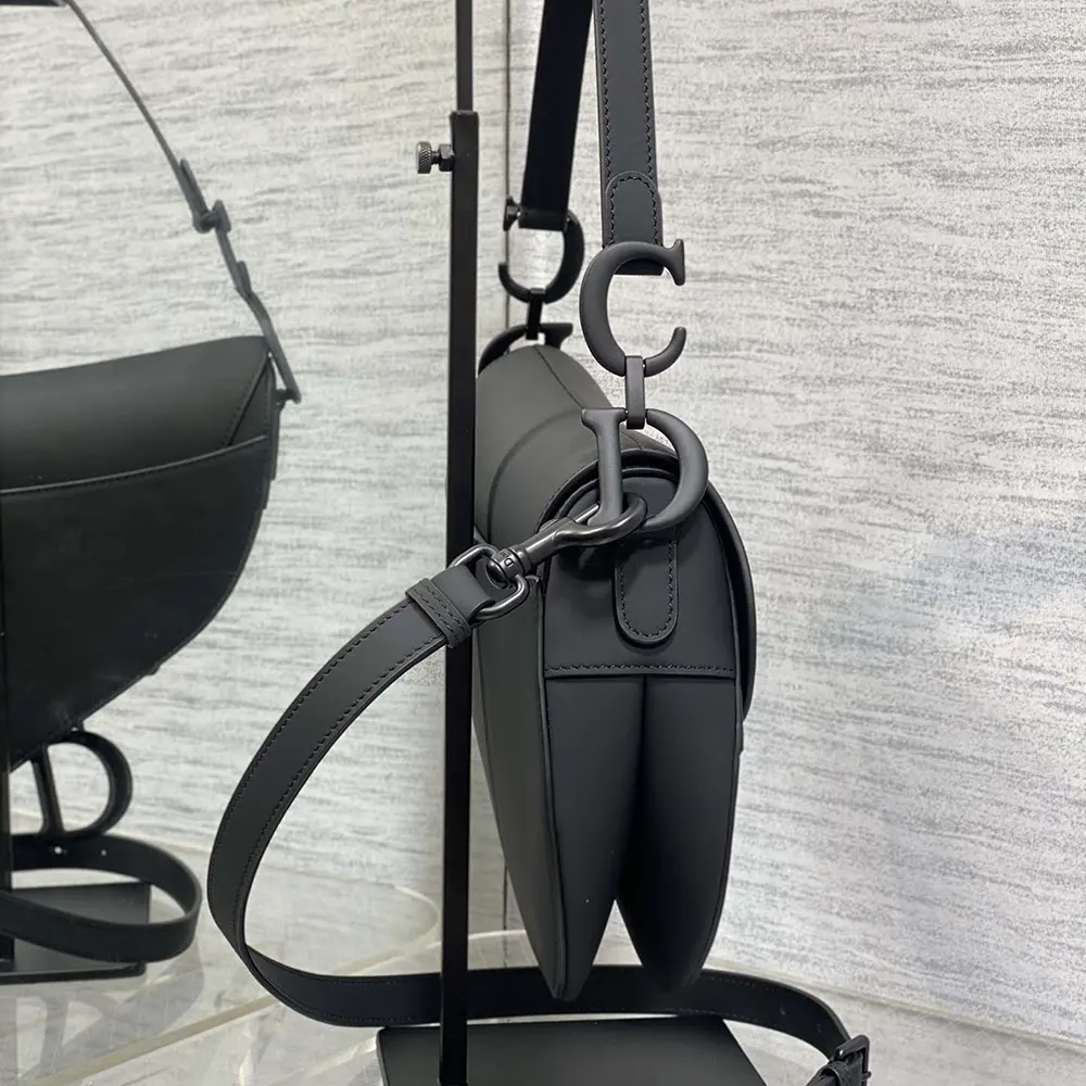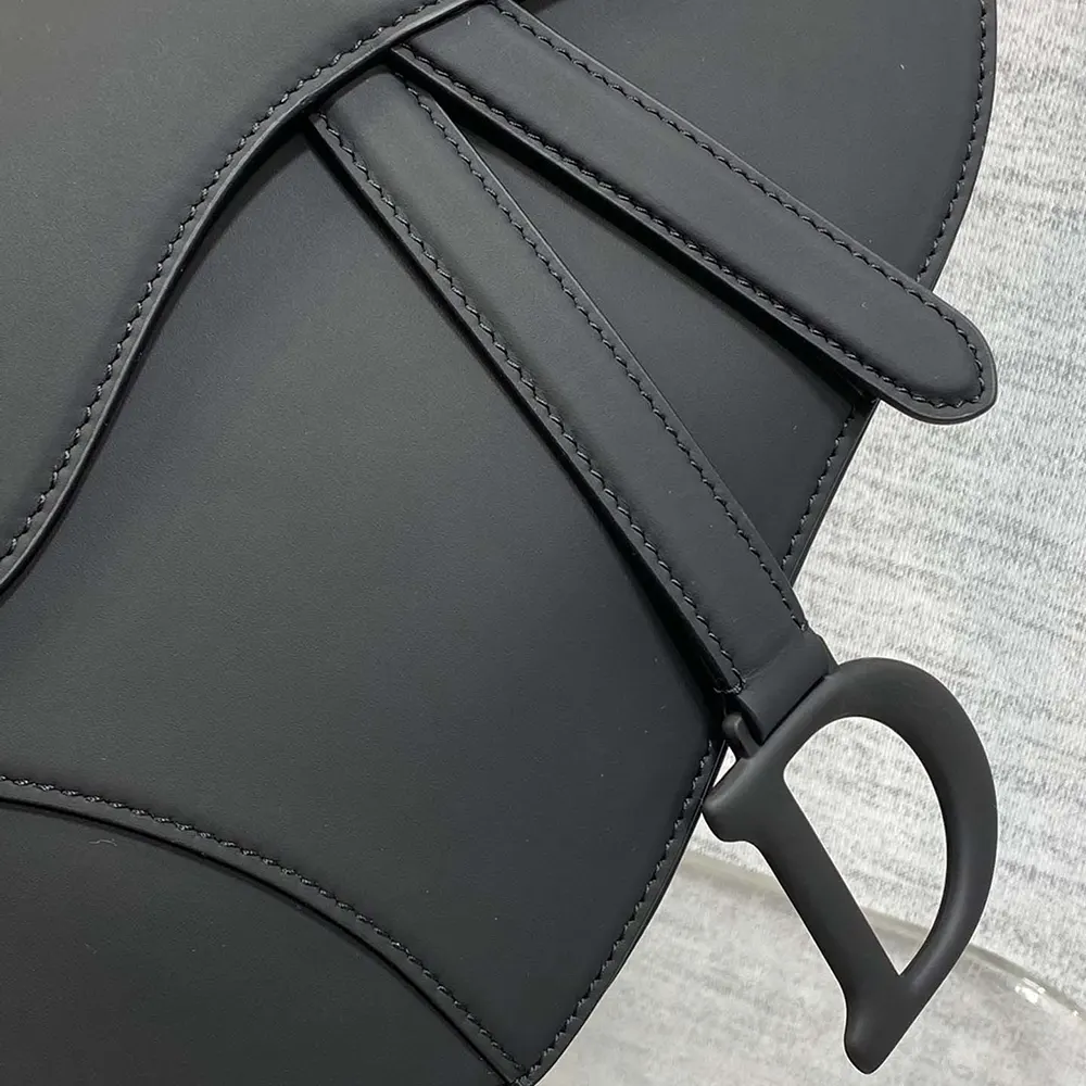 - Crafted in black ultramatte calfskin, the legendary design features a Saddle flap with a D stirrup strap and magnetic pull,