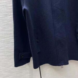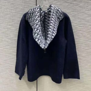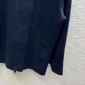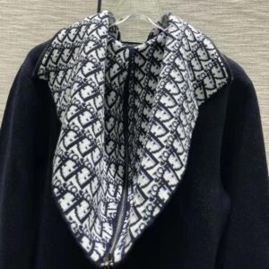 - Crafted in navy blue double-sided wool and silk, it is distinguished by a zipped hood,