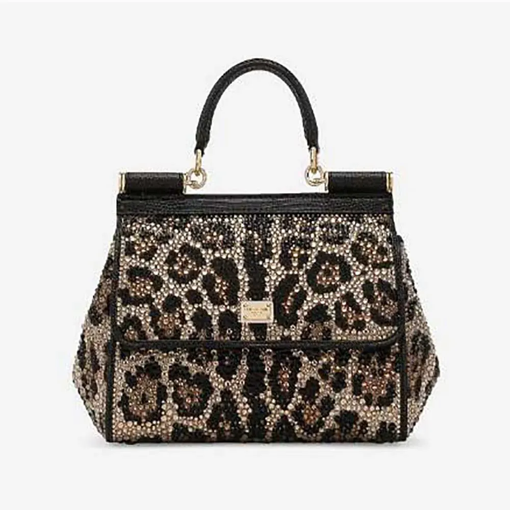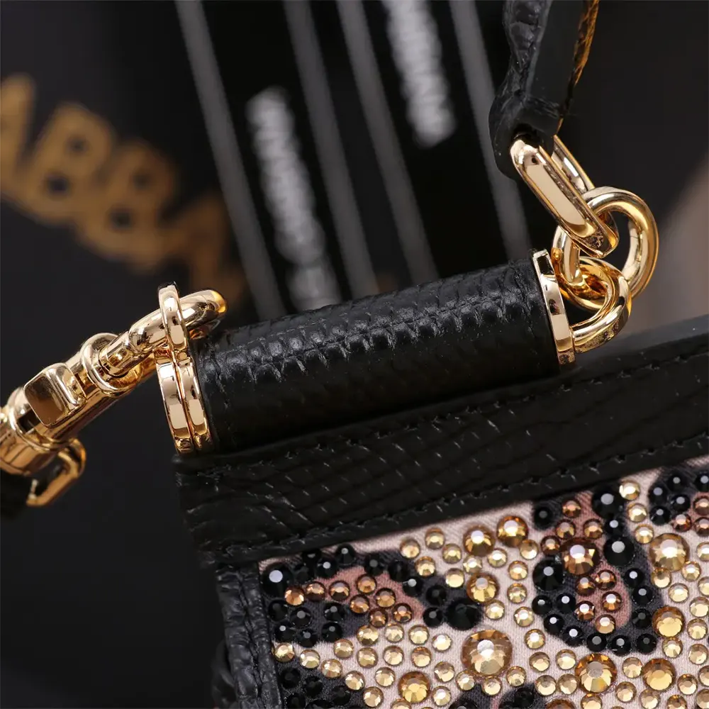 - Medium satin Sicily bag with fusible rhinestone embellishment: