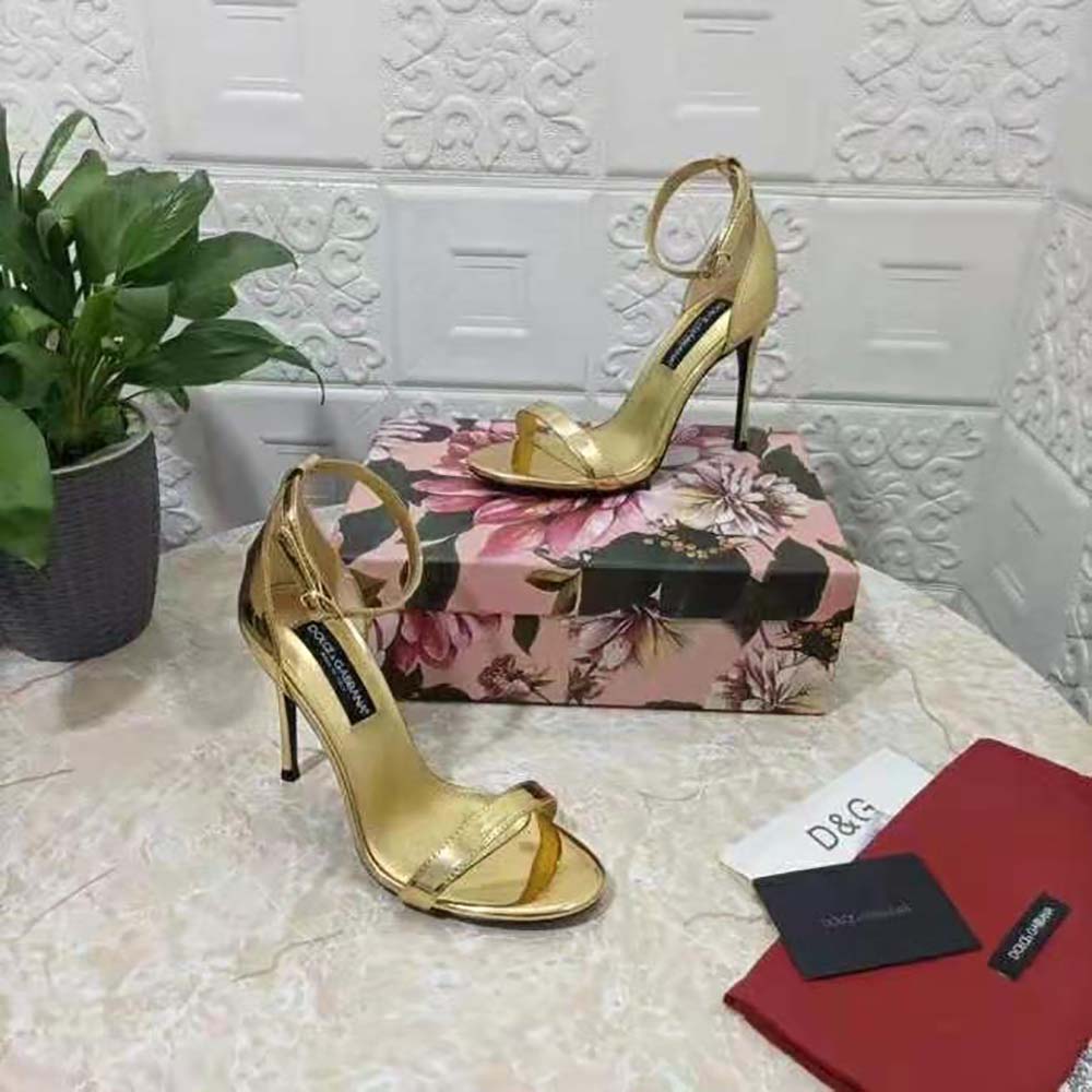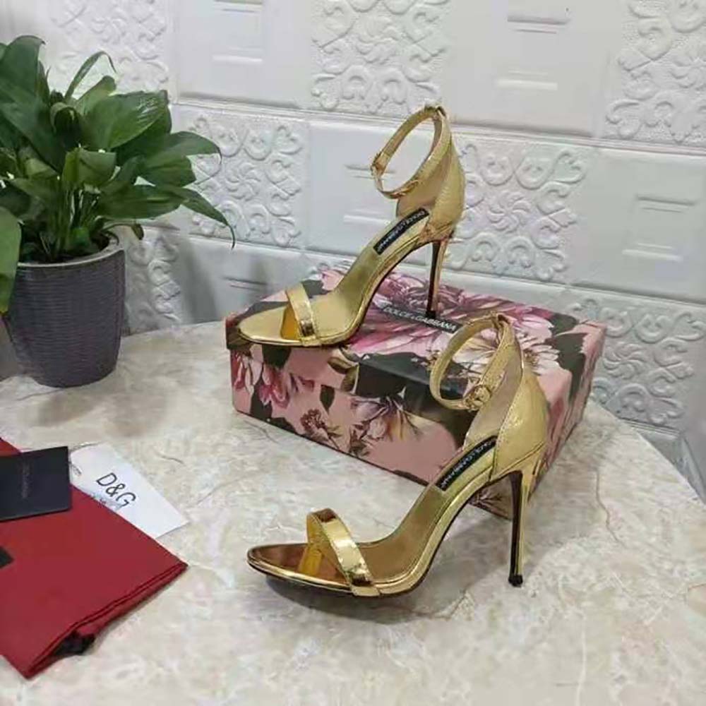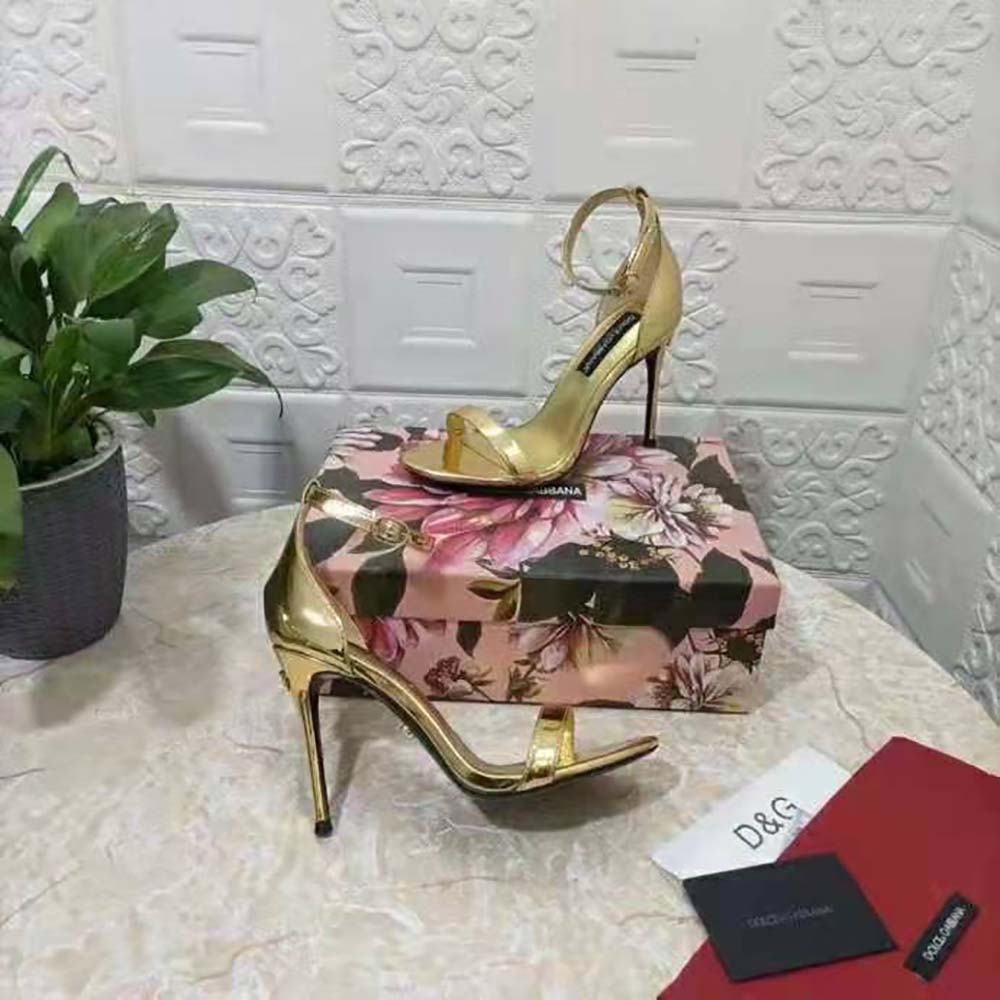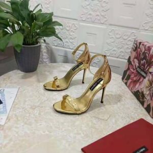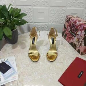 Be the first to review “Dolce Gabbana D&G Women Mirrored-Effect Calfskin Sandals-Gold”