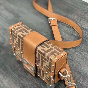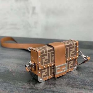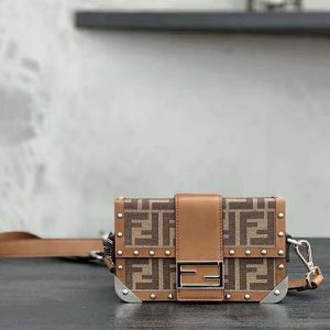 - Rigid Baguette bag with square flap and FF magnetic clasp.