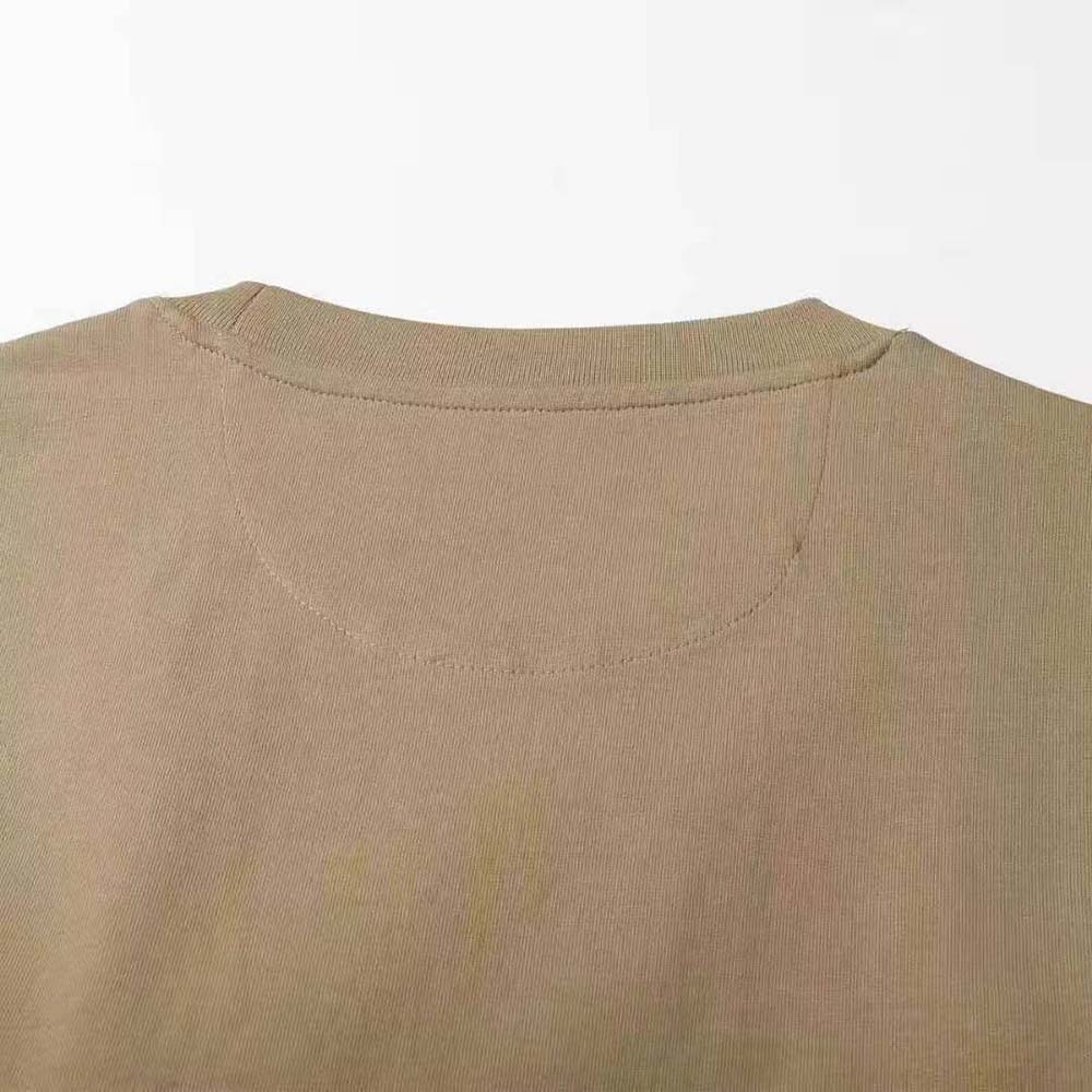 - Crew neck and short sleeves. Made with beige cotton jersey.