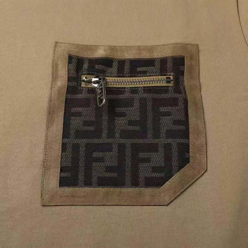 - The breast pocket is embellished with a jacquard FF fabric insert and leather trim in the same colors.