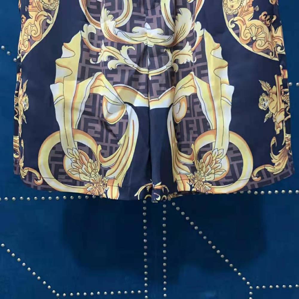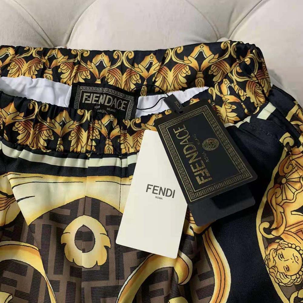 - the graphics combine the iconic Fendi FF logo with the Versace Baroque print.