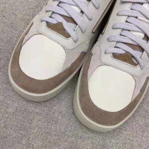 - Lace-up sneakers. Made of beige leather. Brown suede details.