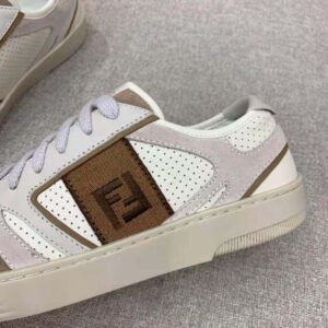 - Embellished with micro perforations at the sides and ribbon with FF embroidery.