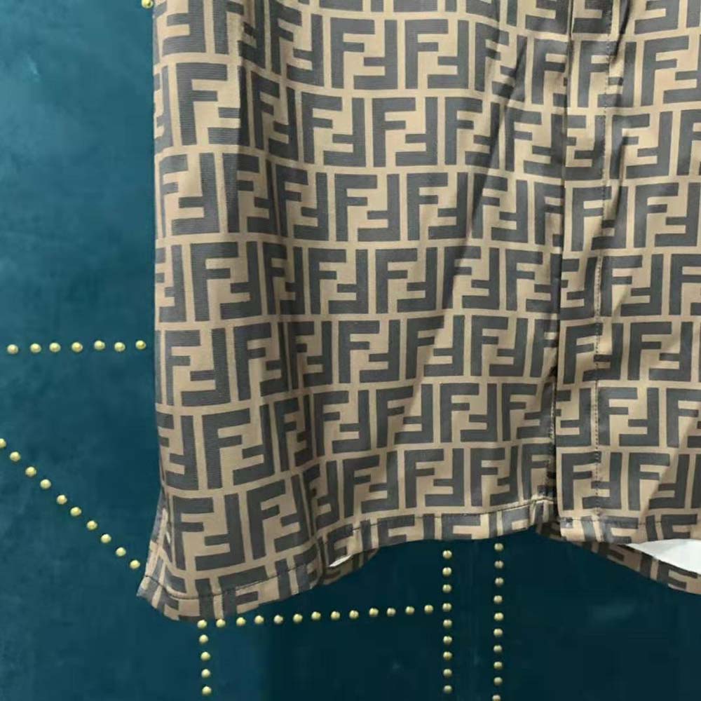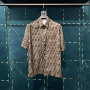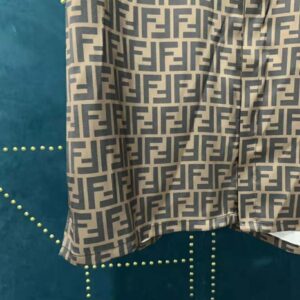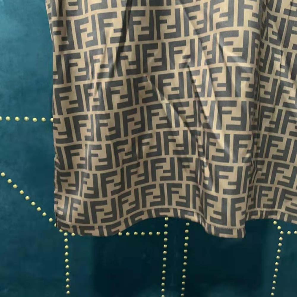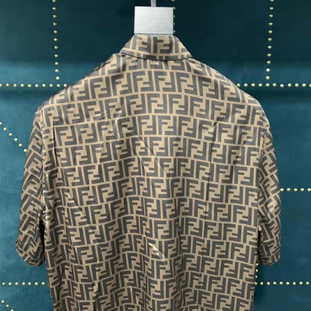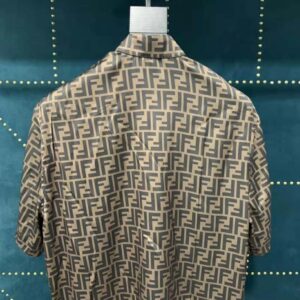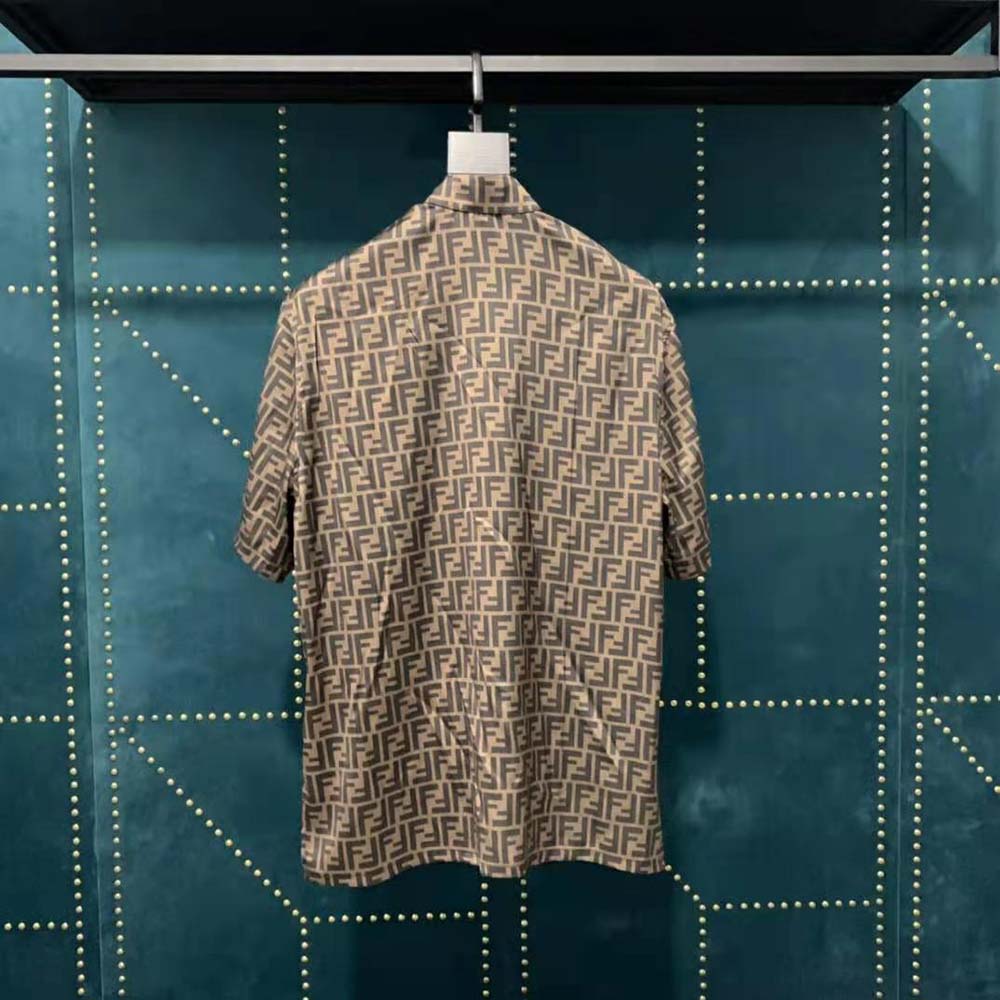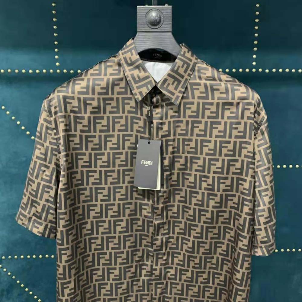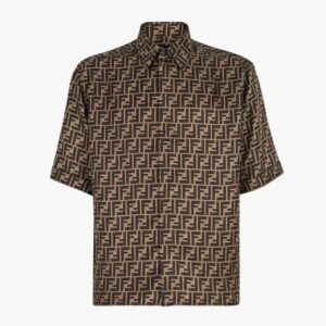 - Concealed button fastening. Made of silk with FF motif printed all over in brown and tobacco.