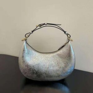 - Small Hobo bag made of silver soft laminated leather with a craquelé effect.