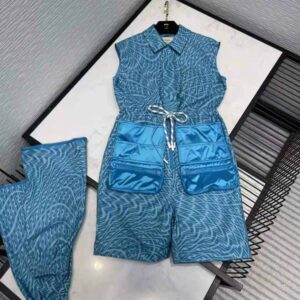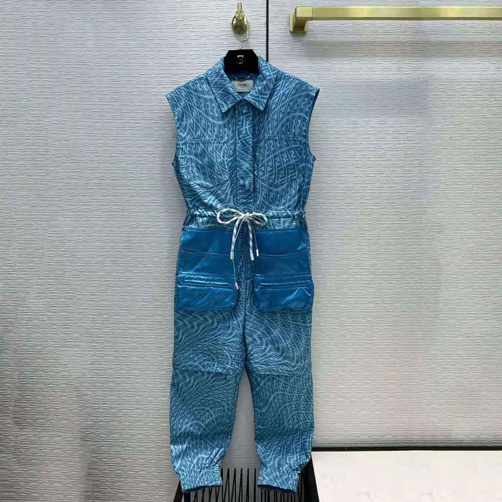 - Jumpsuit with shirt collar and adjustable drawstring waist.