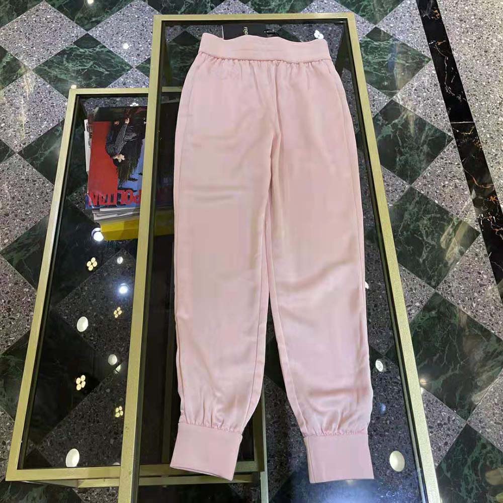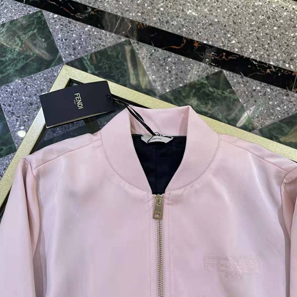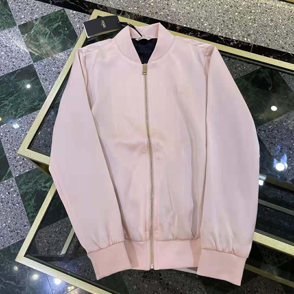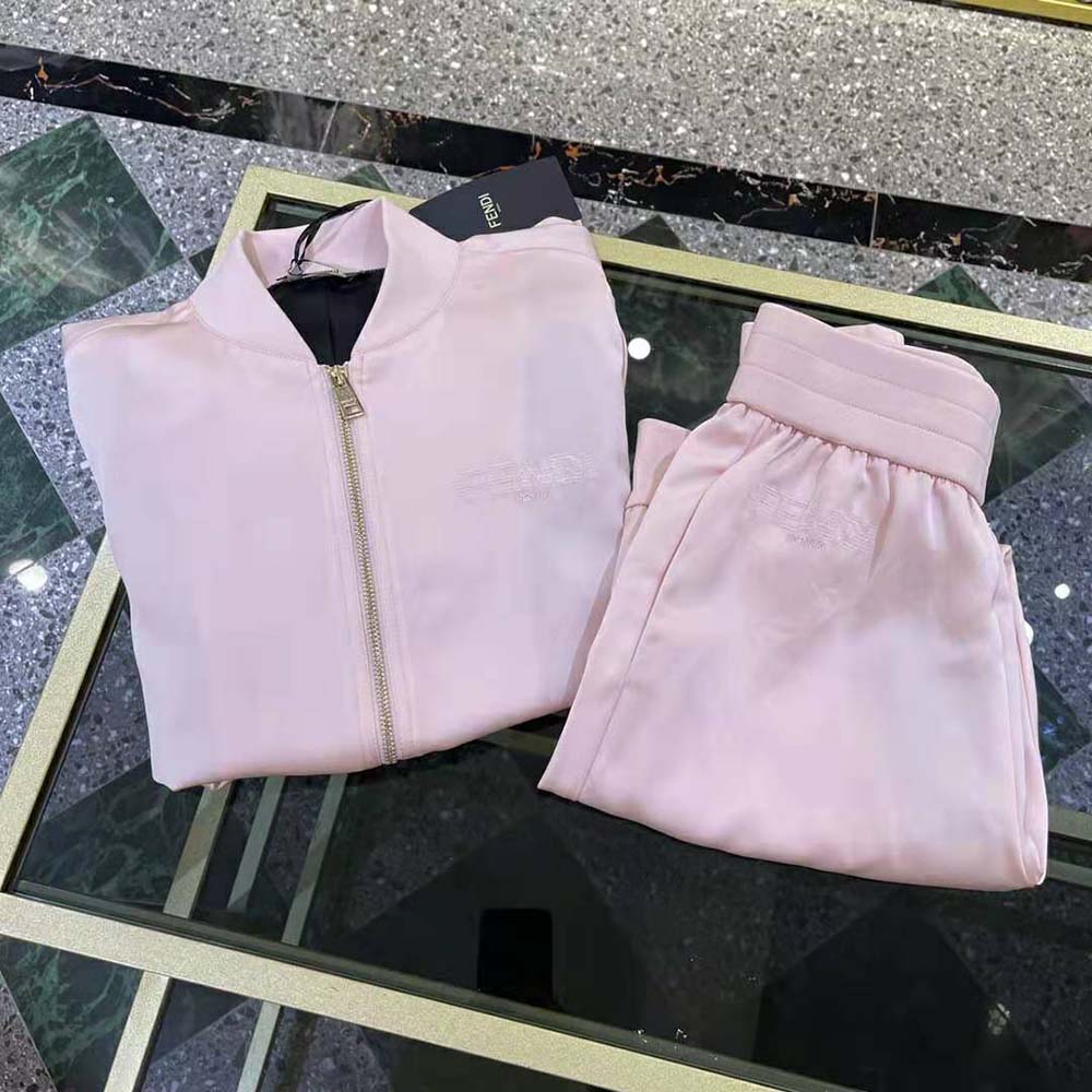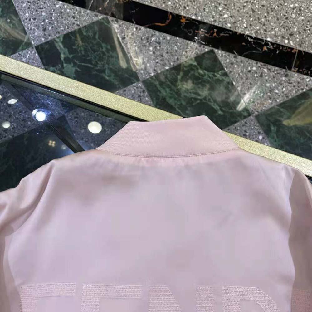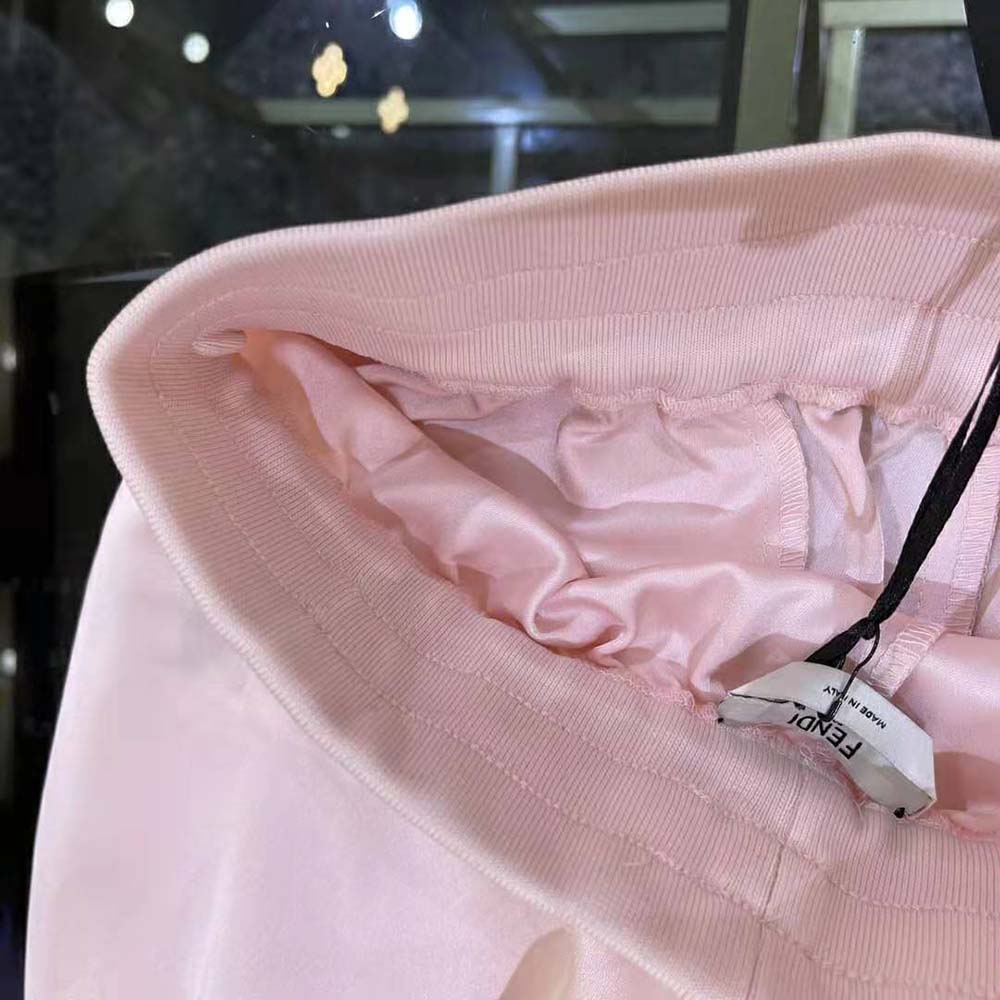 - Made of pink satin. Oversized Fendi logo embroidered on the back of the sweatshirt,