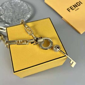 - Fendi O’Lock chain link necklace and key-shaped pendant with F logo.