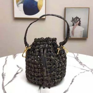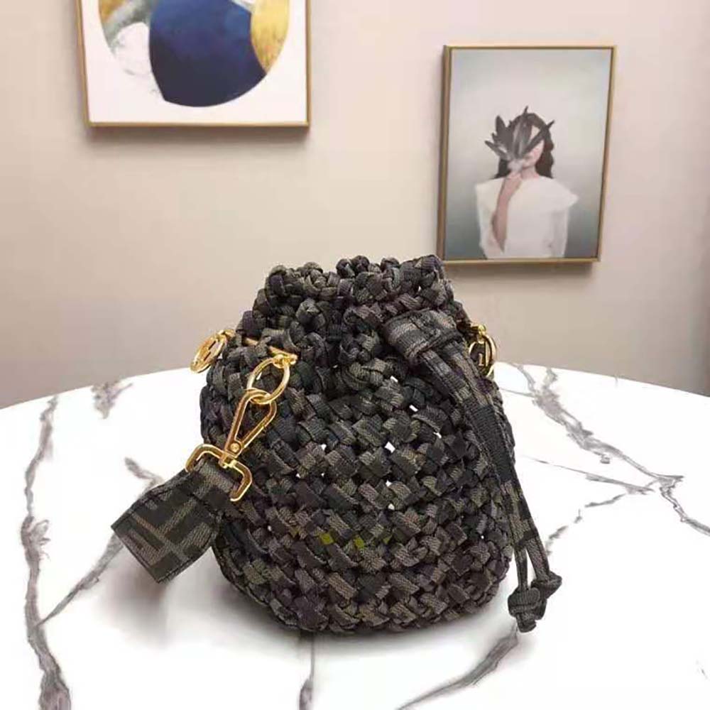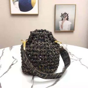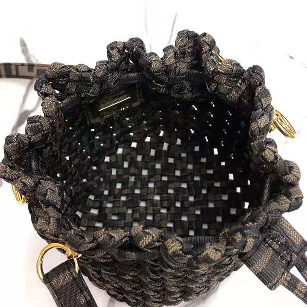 - Made with interwoven strips of FF jacquard fabric. Gold-finish metalware.