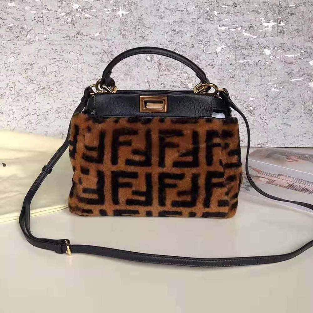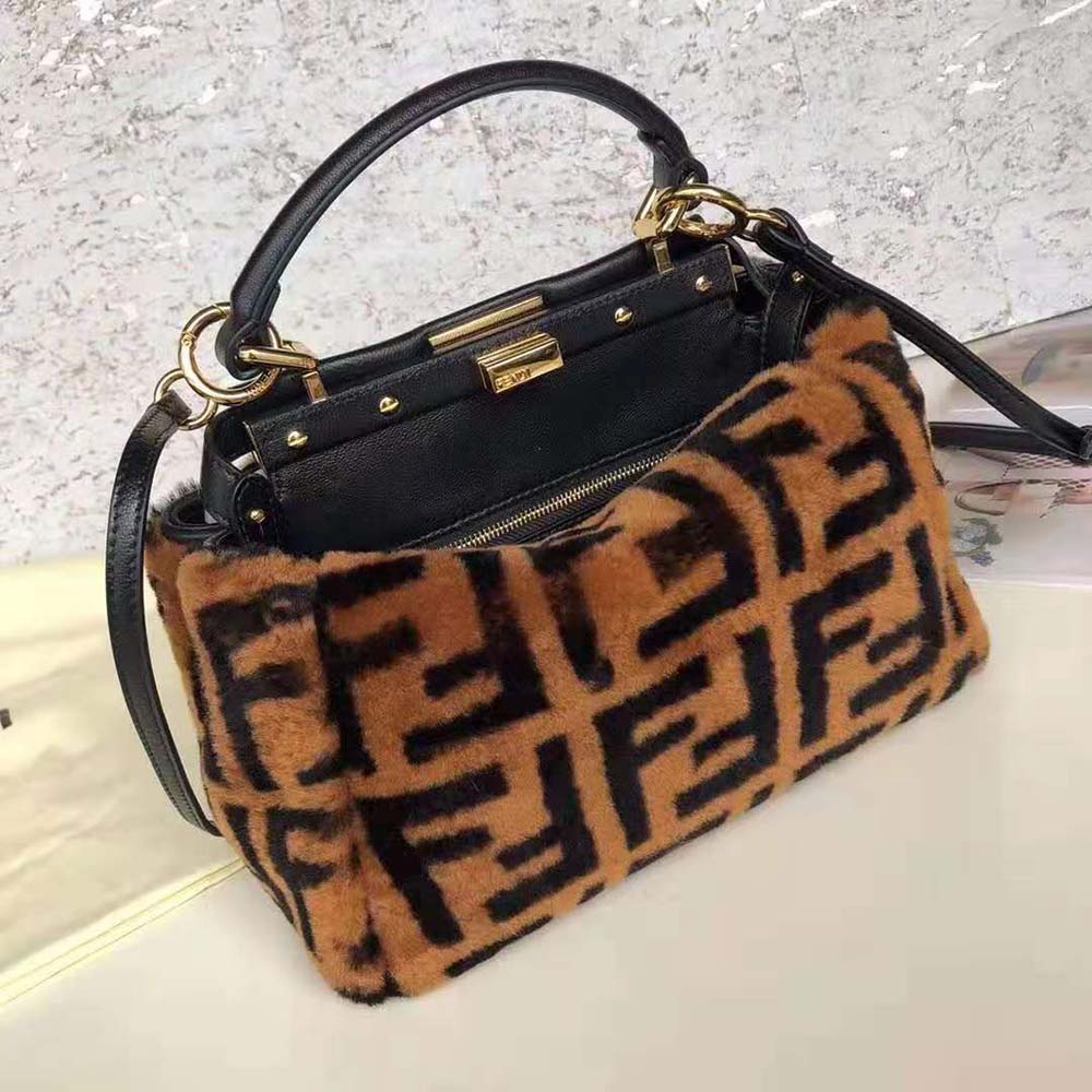 - Made of sheepskin with macro FF motif printed in brown and black.