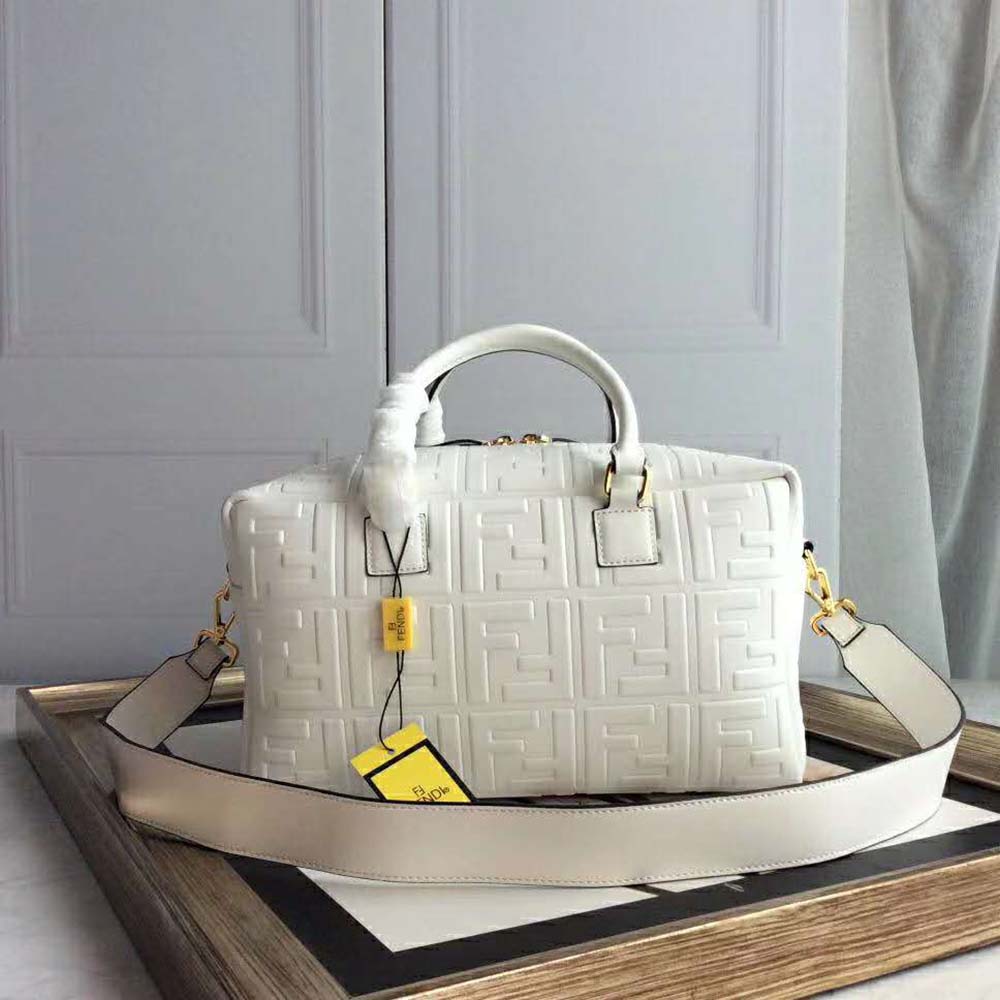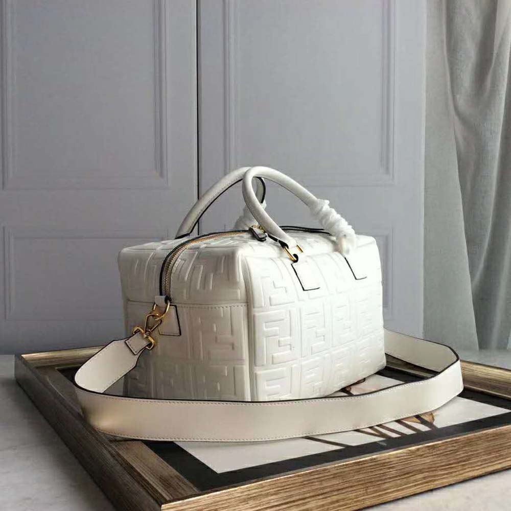 - Made of white lambskin with an all-over FF motif in a soft, three-dimensional texture.