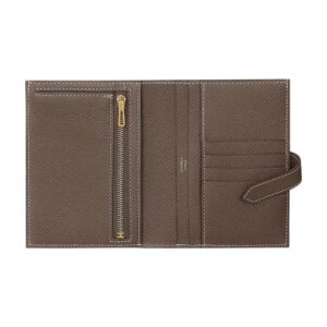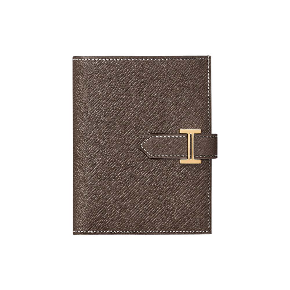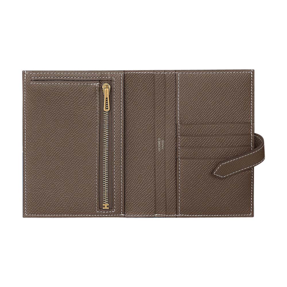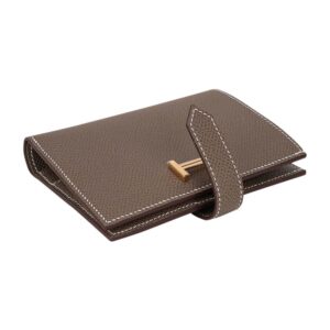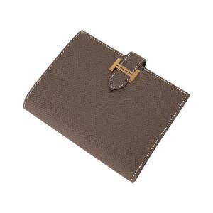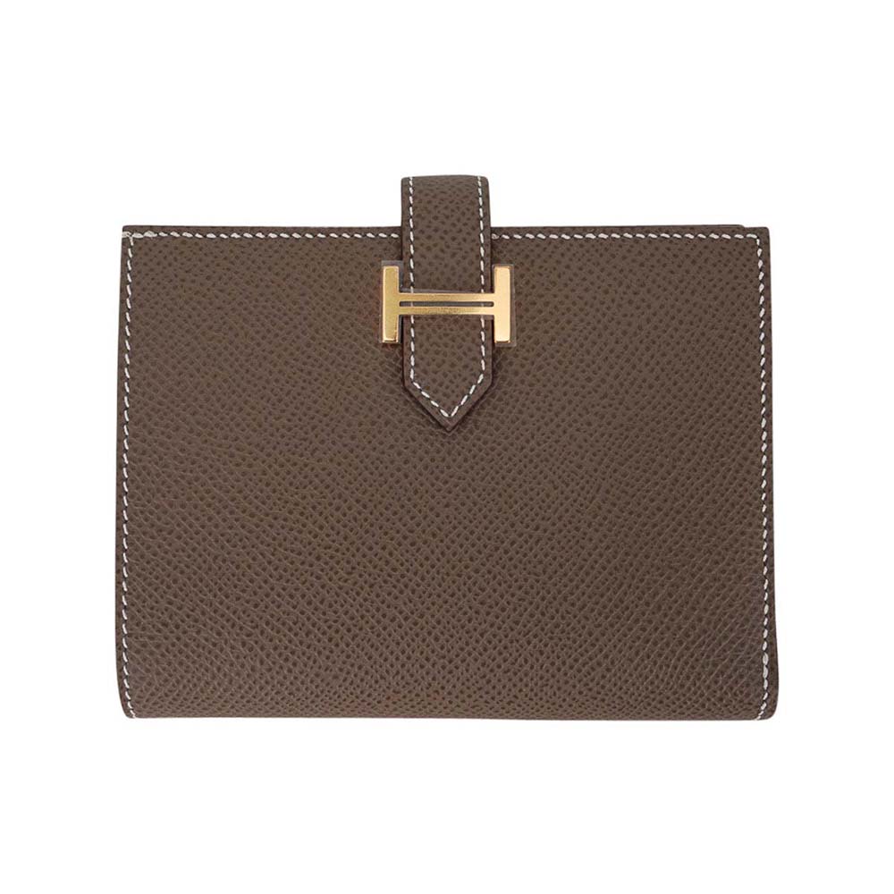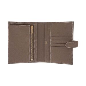 - Hermes Bearn compact wallet featured in Etoupe and Epsom leather.