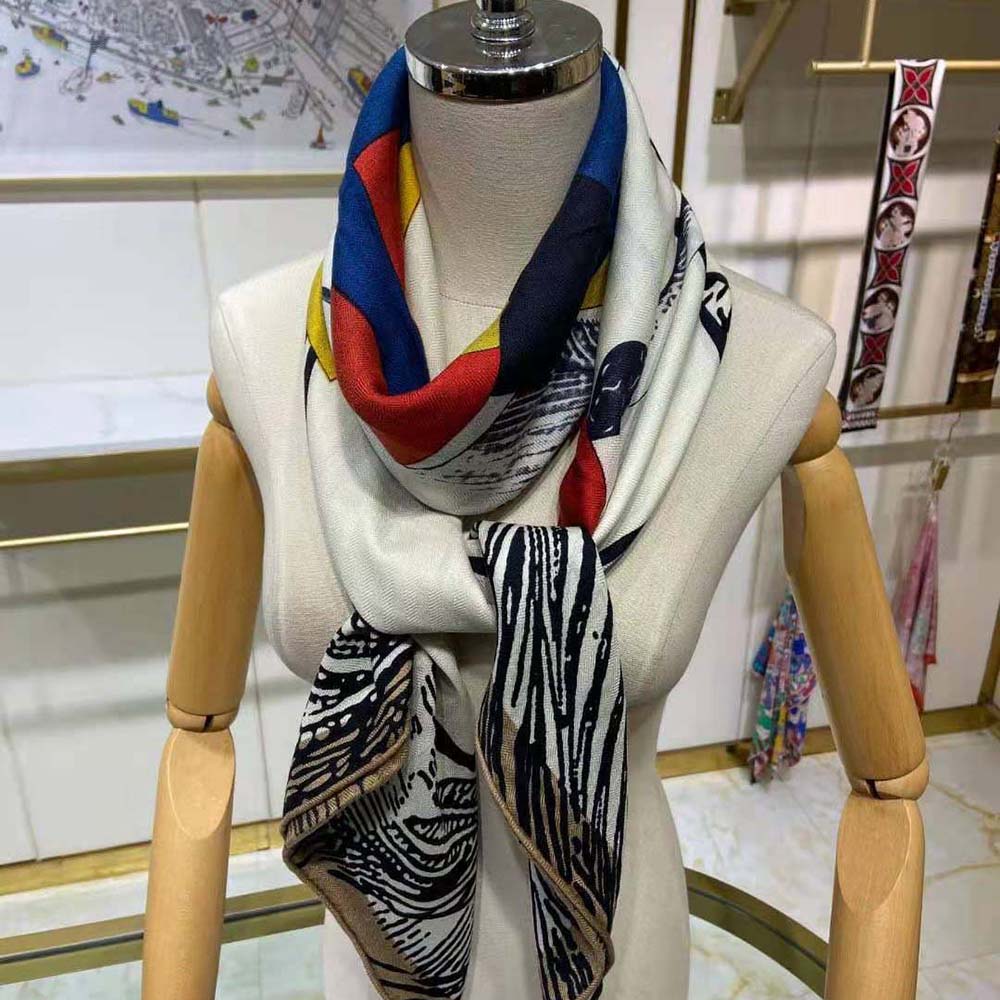 Hermes Women Cavalier En Formes Scarf 90-White