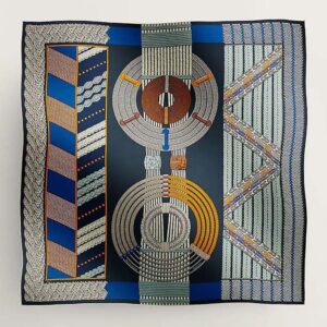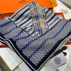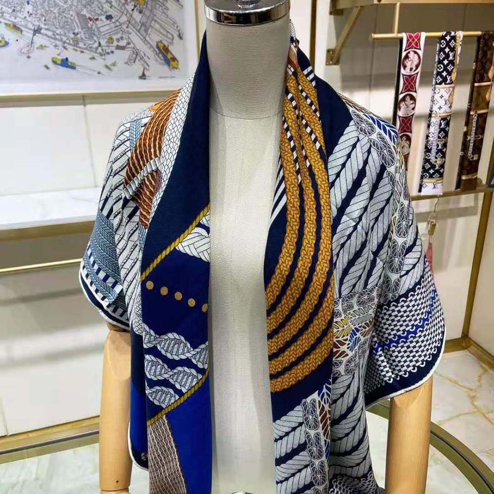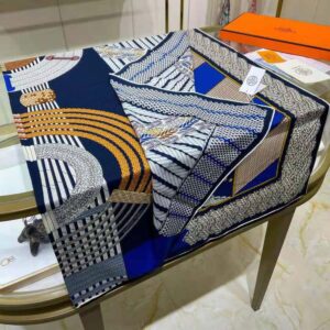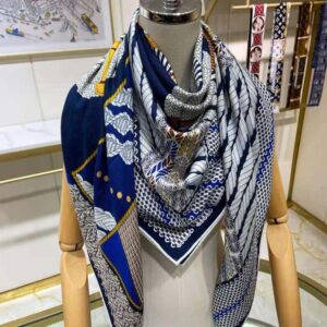 Hermes Women Dressage Tressage Shawl 140-Navy