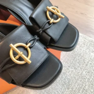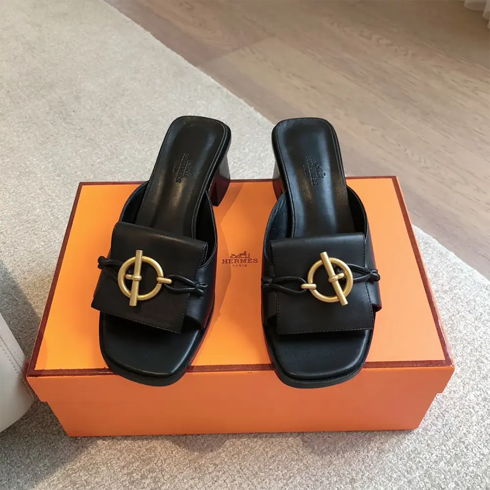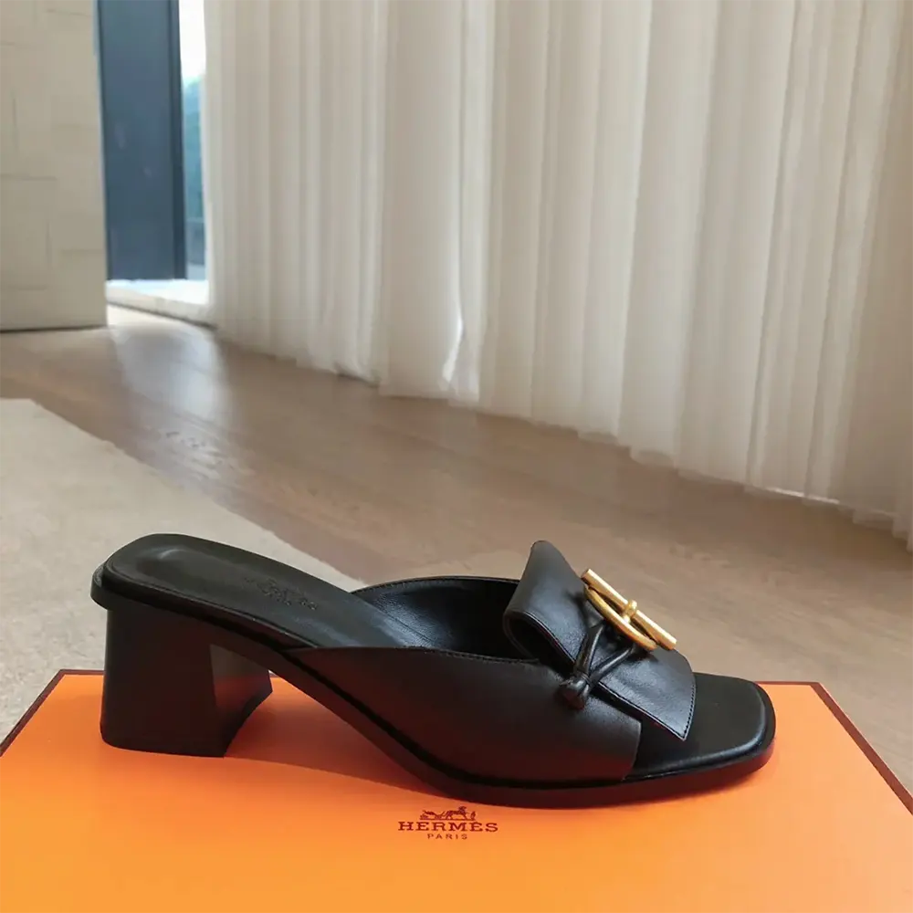 - High heel sandal in calfskin featuring the iconic Glenan buckle.