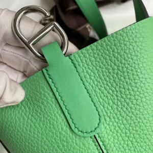 Be the first to review “Hermes Women In the Loop 18 Handbag Clemence Leather-Green/Silver”