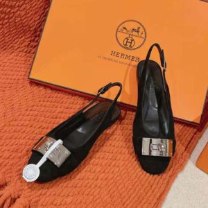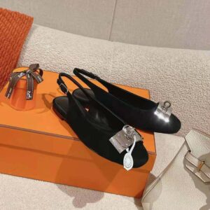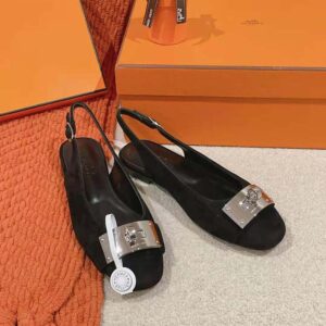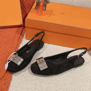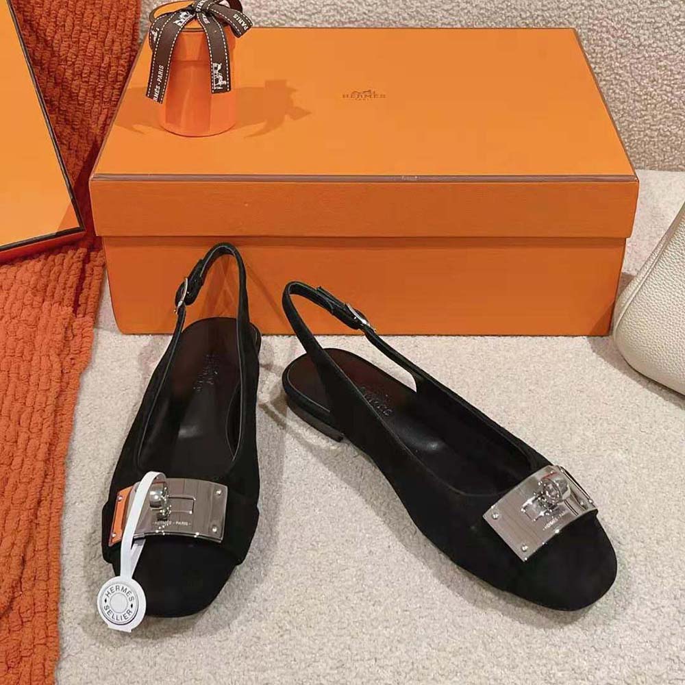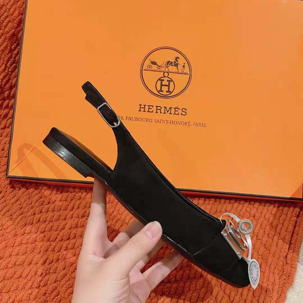 - Slingback in goatskin with iconic palladium-plated oversized Kelly buckle.