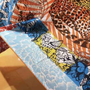 Be the first to review “Hermes Women Jungle Love Stamped Scarf 70 in Silk Twill with Hand-Rolled Edges-Orange”