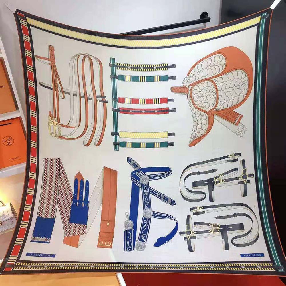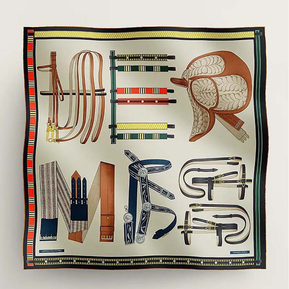 Hermes Women Lettres Equestre Scarf 90-Brown