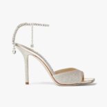 - High heel espadrille in calfskin with wrap-around ankle strap and iconic palladium-plated buckle.