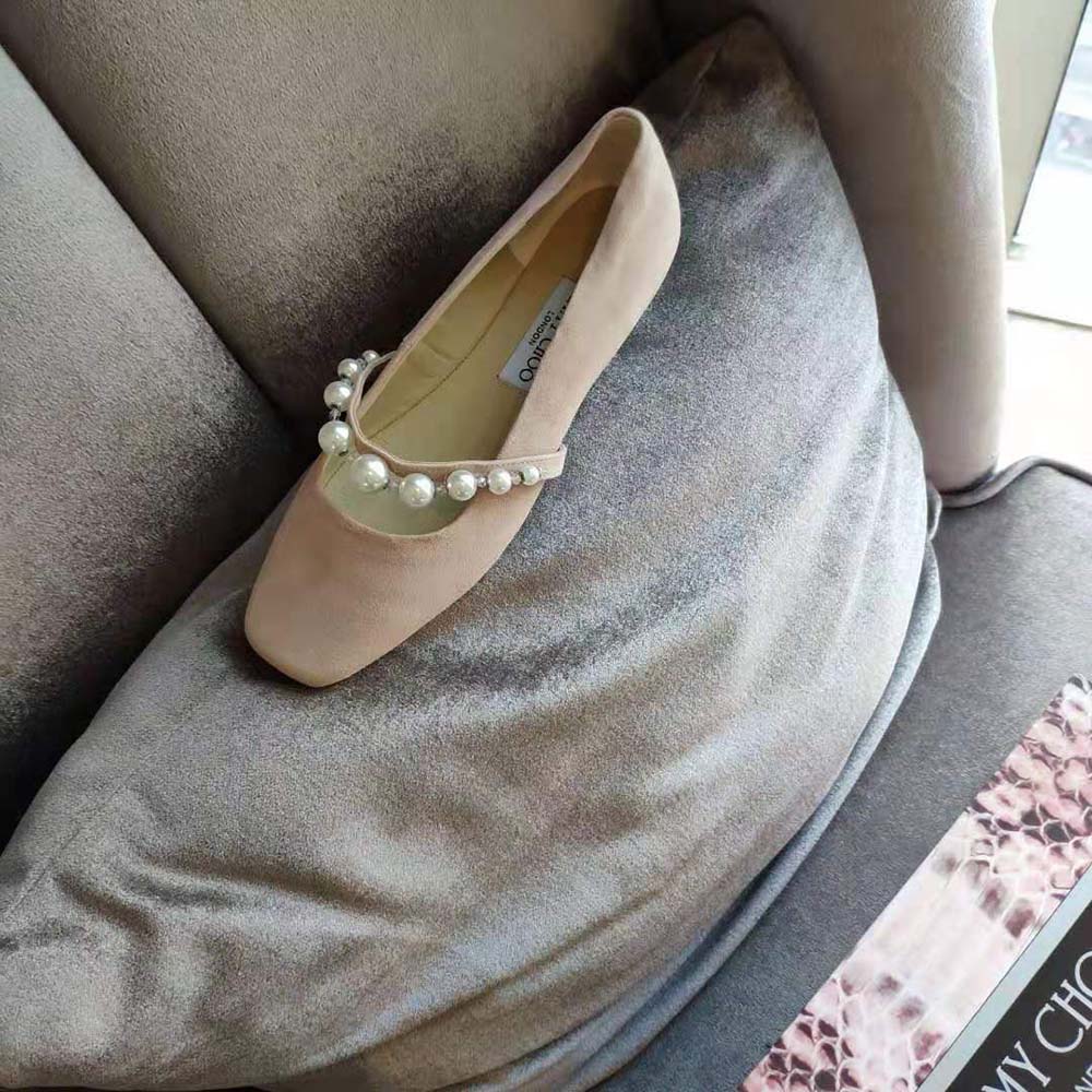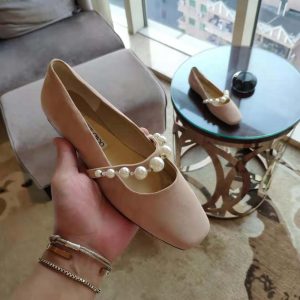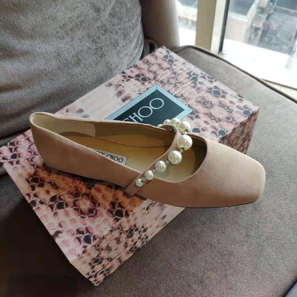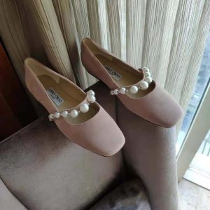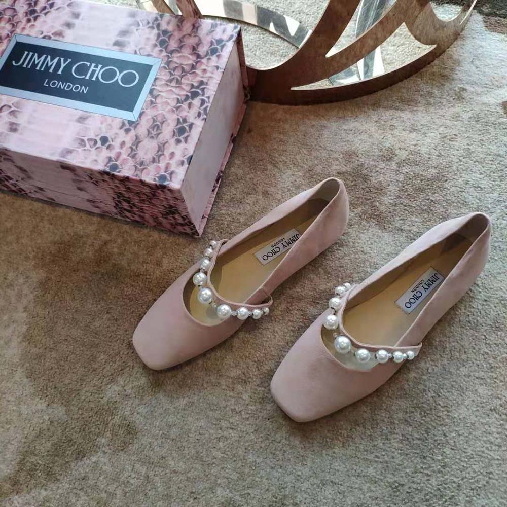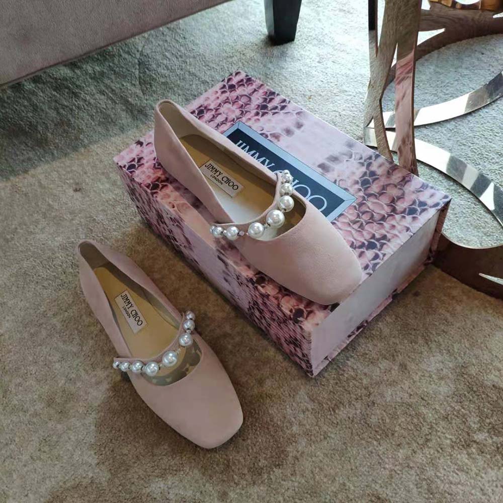 Be the first to review “Jimmy Choo Women Ade Flat Ballet Pink Suede Flats with Pearl Embellishment”