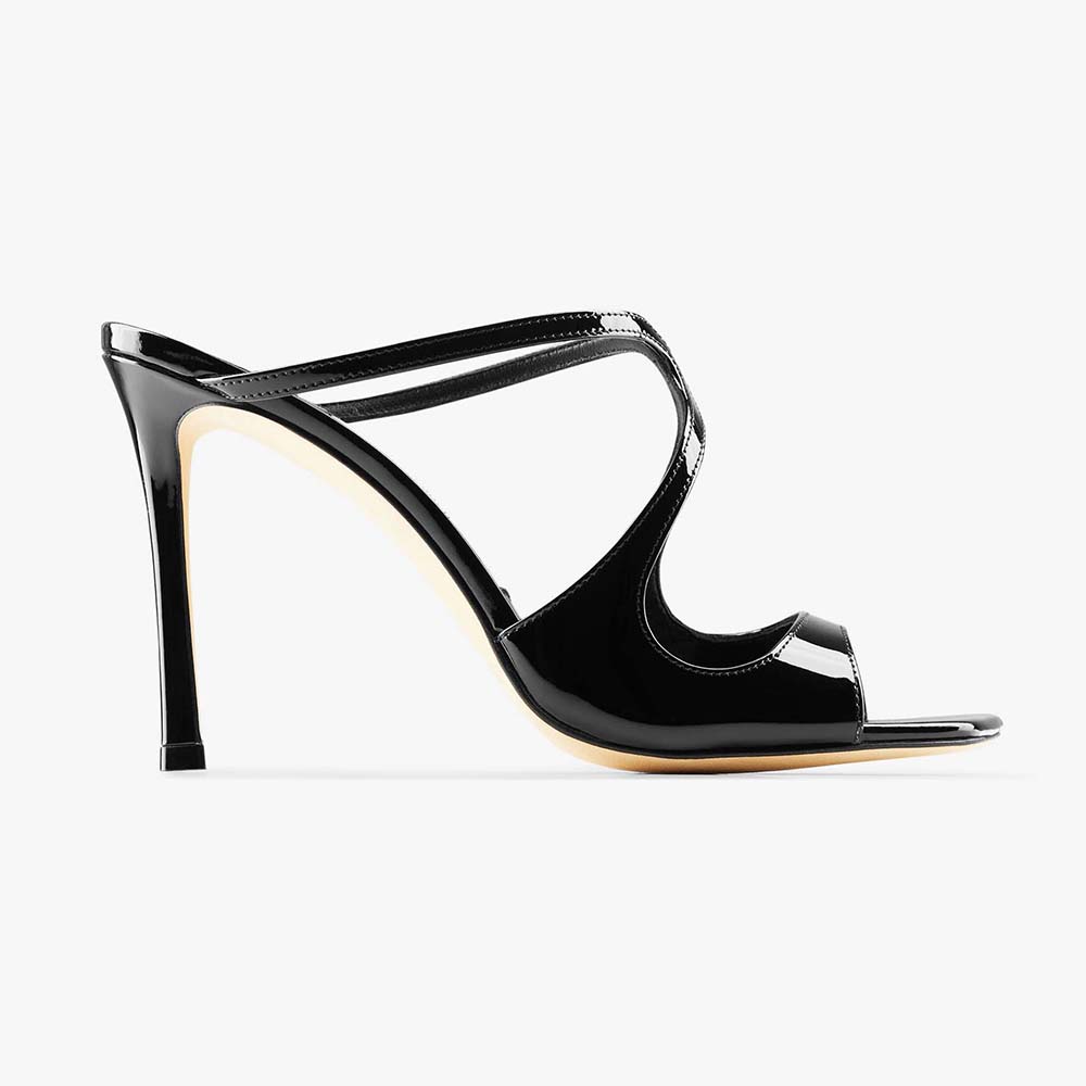 - Elegant and feminine, our ANISE mules are presented in black patent leather.