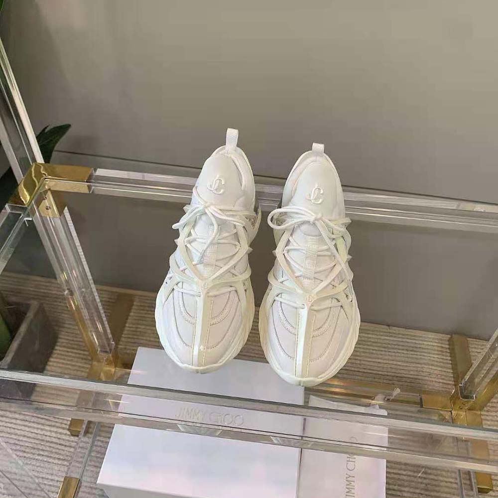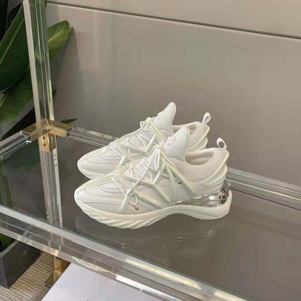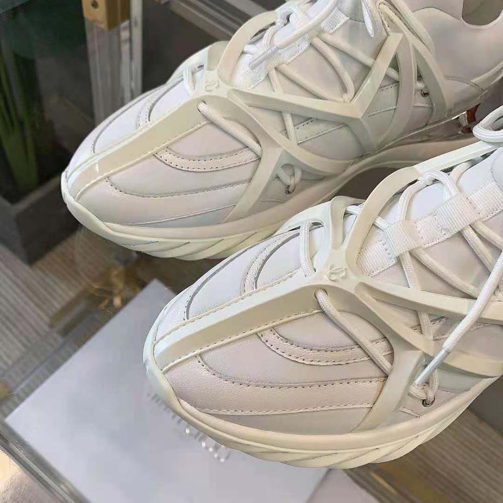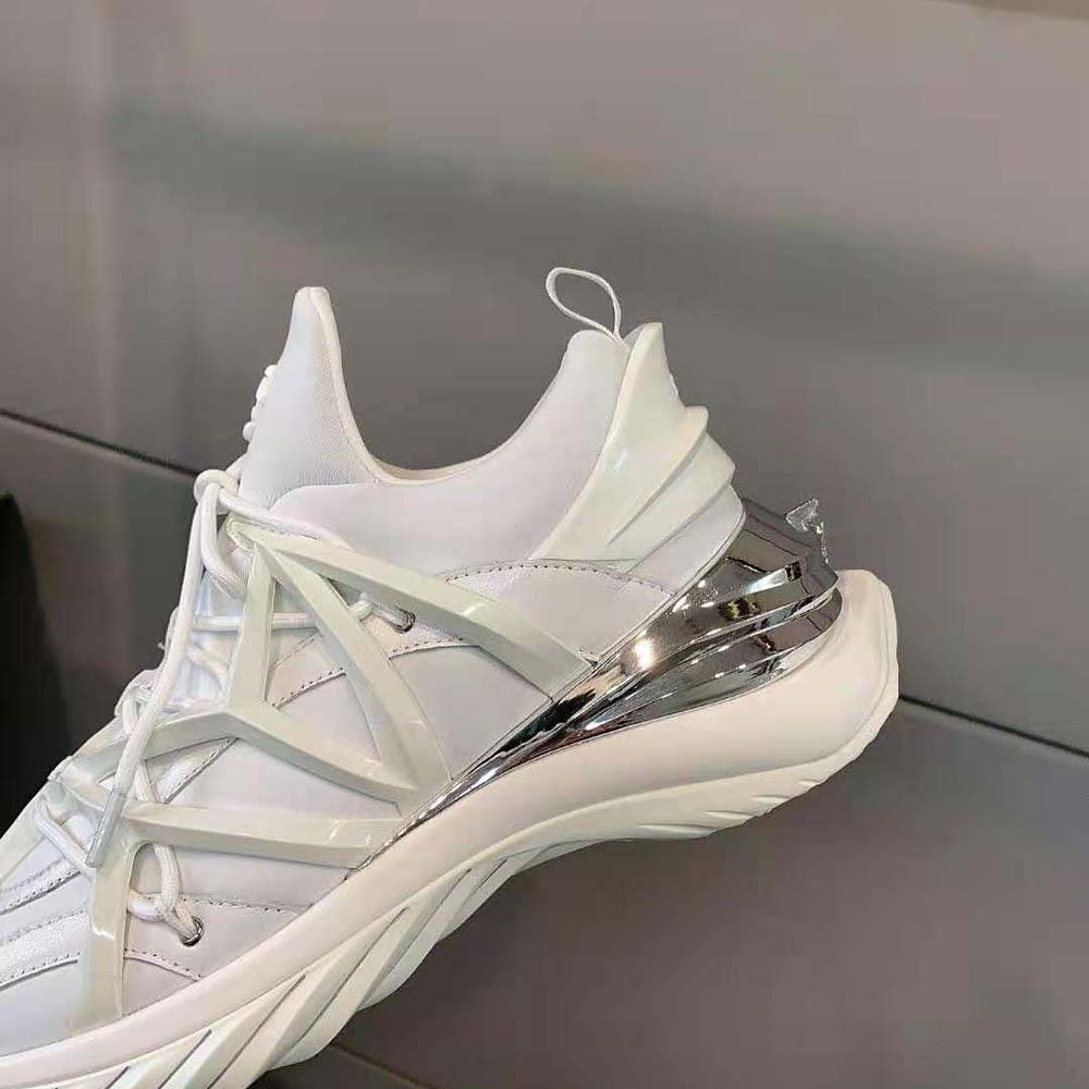 - The daring and dynamic COSMOS trainer is crafted in a combination of white and silver neoprene and leather.