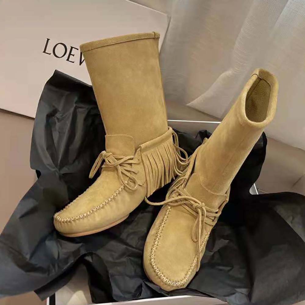 Be the first to review “Loewe Women Fringed Soft Boot in Split Calfskin-Brown”