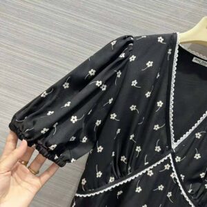 - The floral print is accented with velvet and lace details that complete the delicately feminine taste of the
