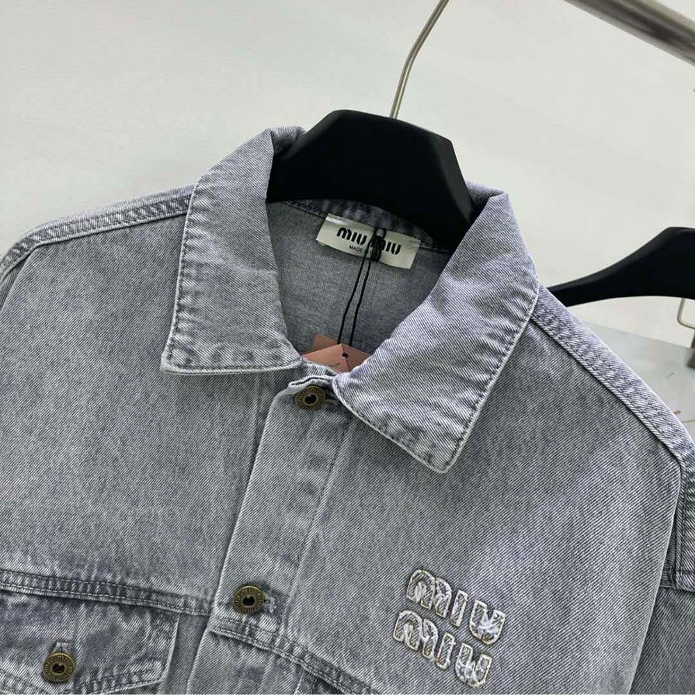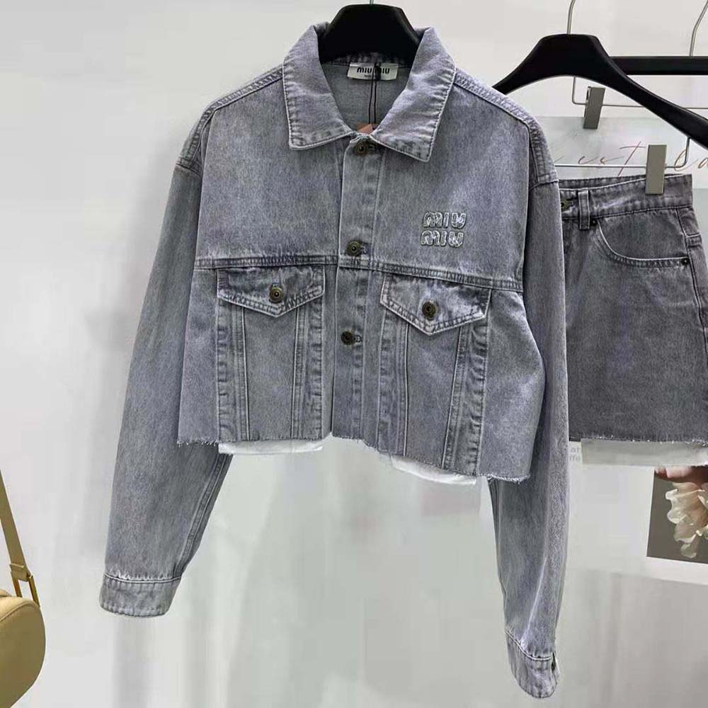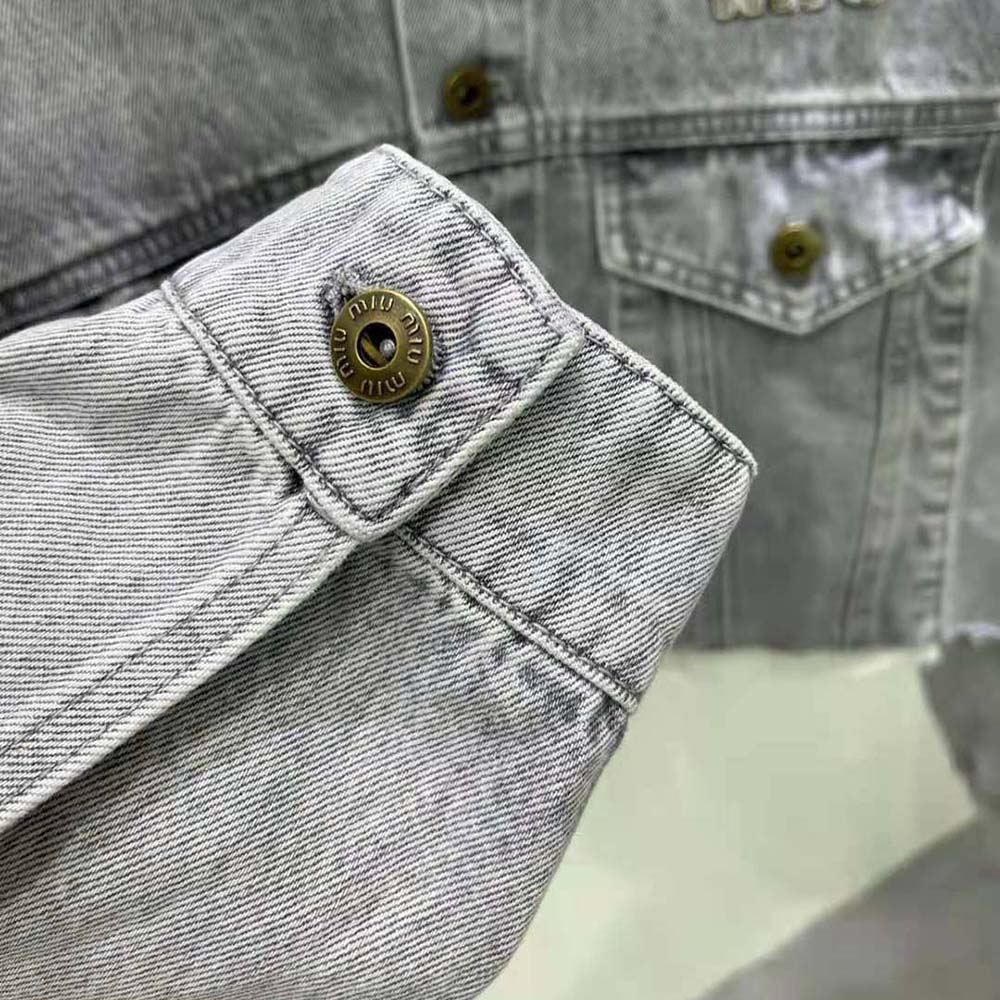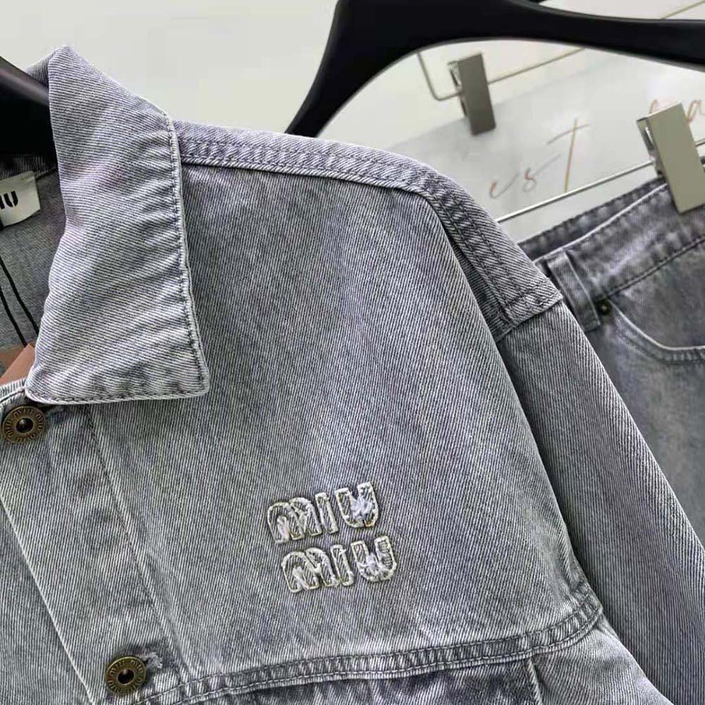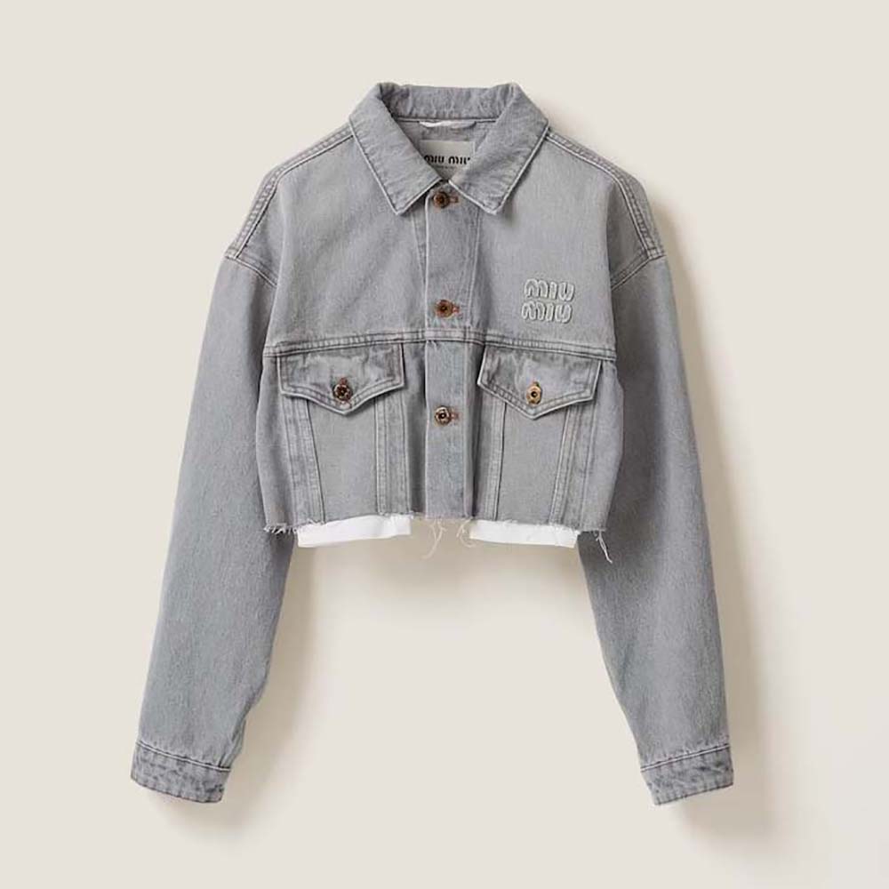 - The timeless character of denim meets Miu Miu’s effortless femininity in this blouson jacket.