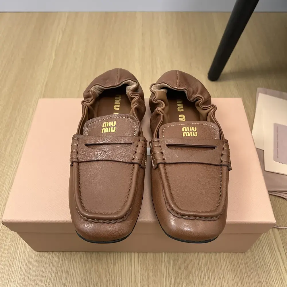 - Elegant vintage references characterize these nappa leather loafers with light, versatile lines.