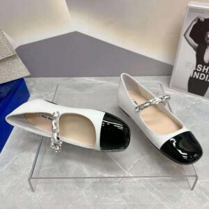 - A sophisticated chain accents the silhouette completed by the iconic Miu Miu pearl on the closure.