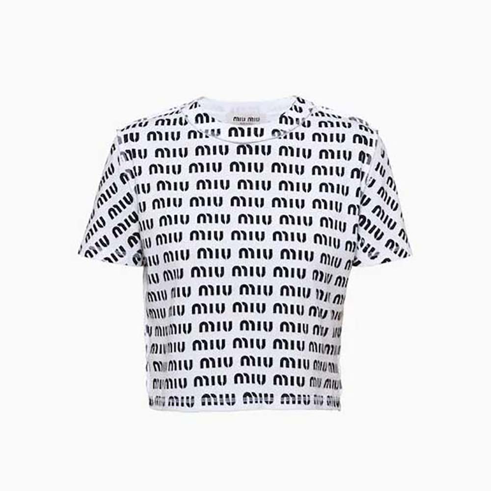 • The Miu Miu print logo elevates the simple lines of this new cotton tee.